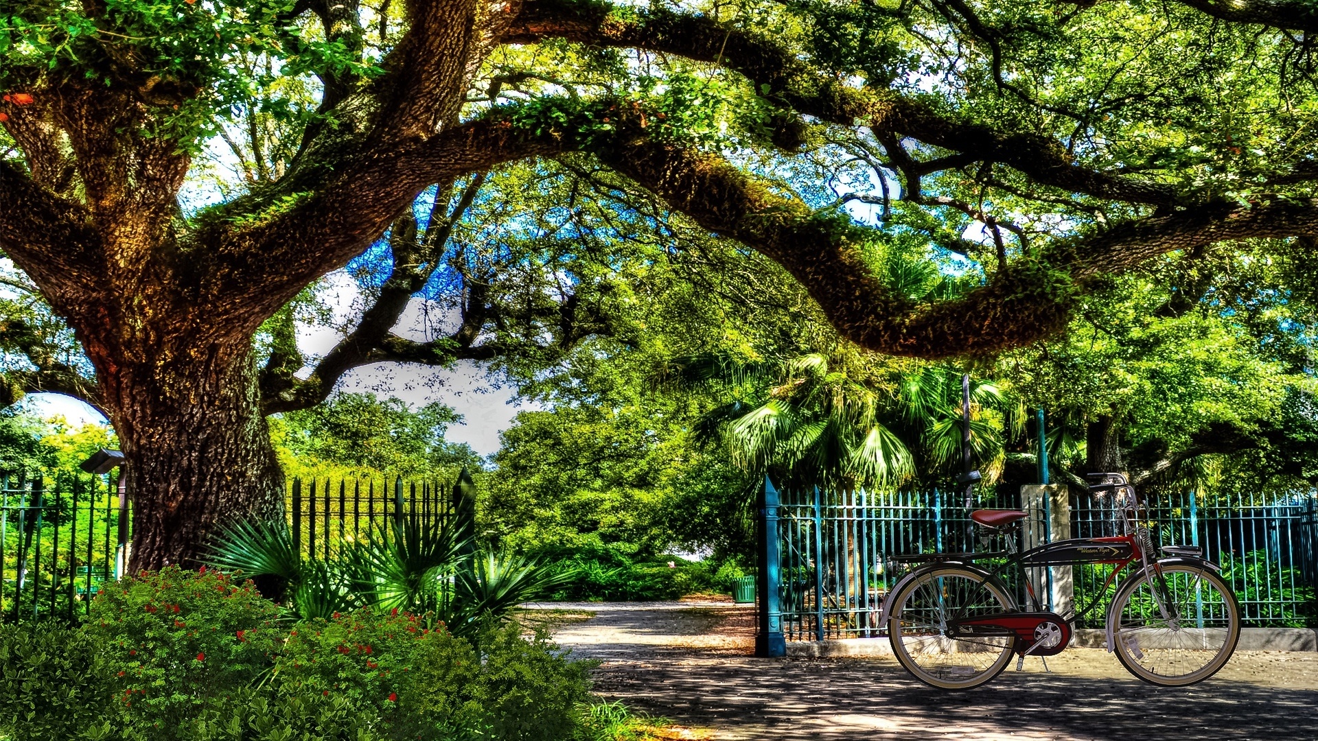 Edytor tapety: Park, Wejście, Drzewo, Rower