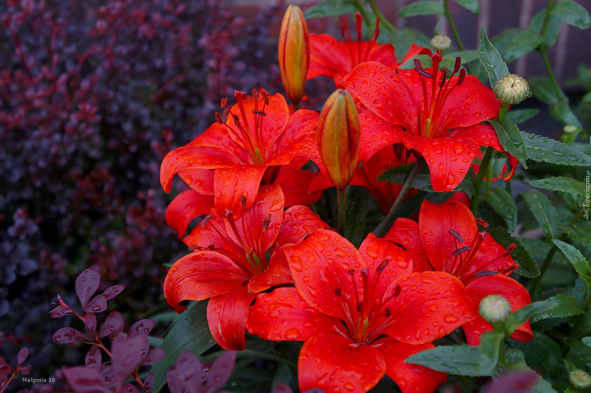 Edytor tapety: Kwiaty, Czerwone, Lilie, Krople