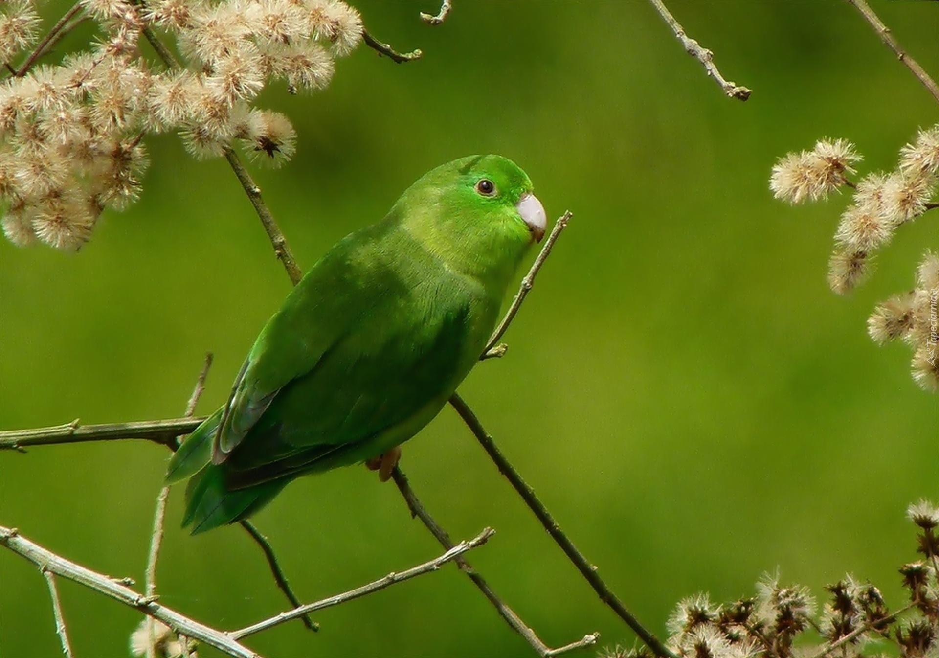 Edytor tapety: Zielona, Papuga, Gałązki