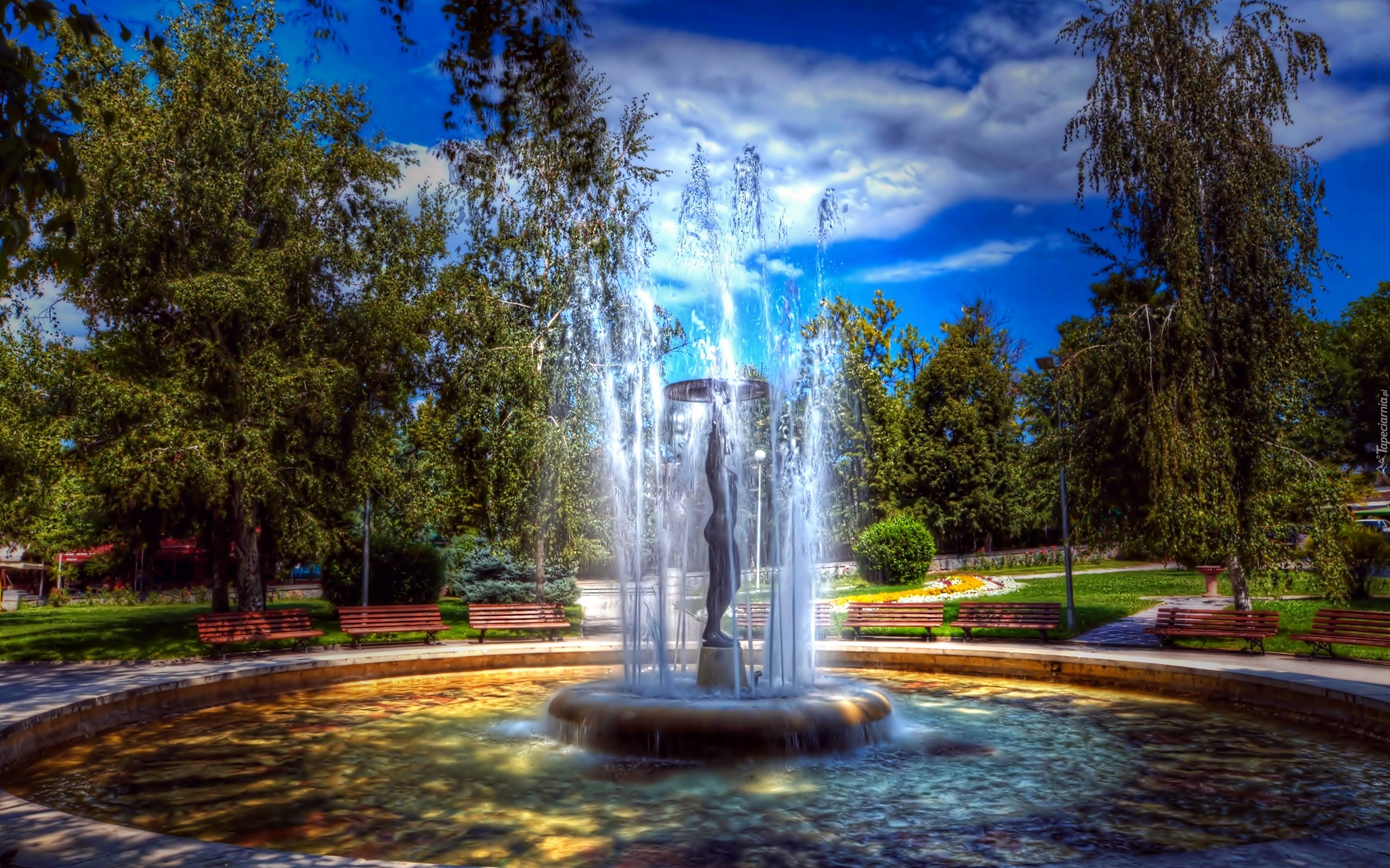 Edytor tapety: Park, Obłoki, Światło, Cień, Fontanna