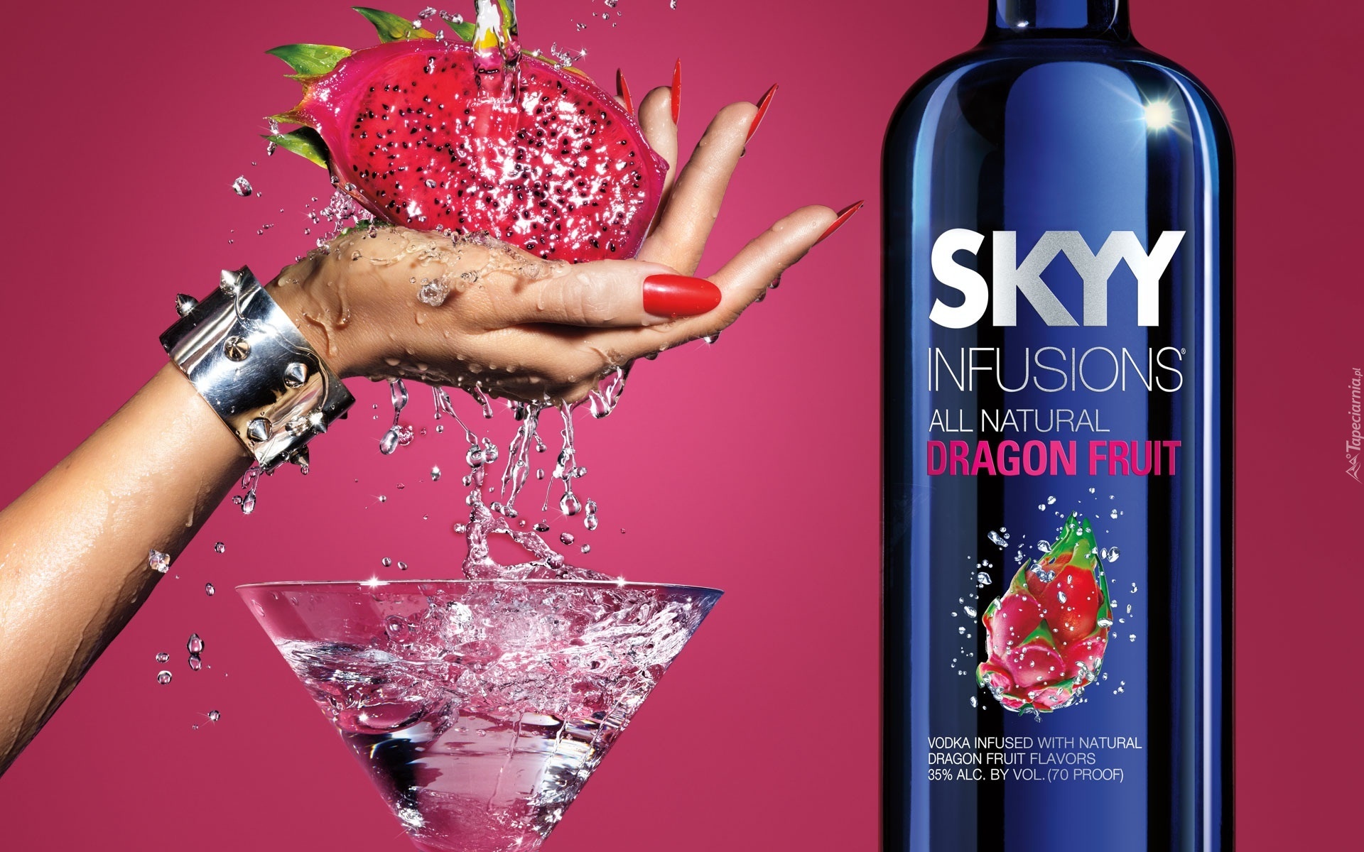 Edytor tapety: Wódka, Skyy, Ręka, Owoc, Kieliszek
