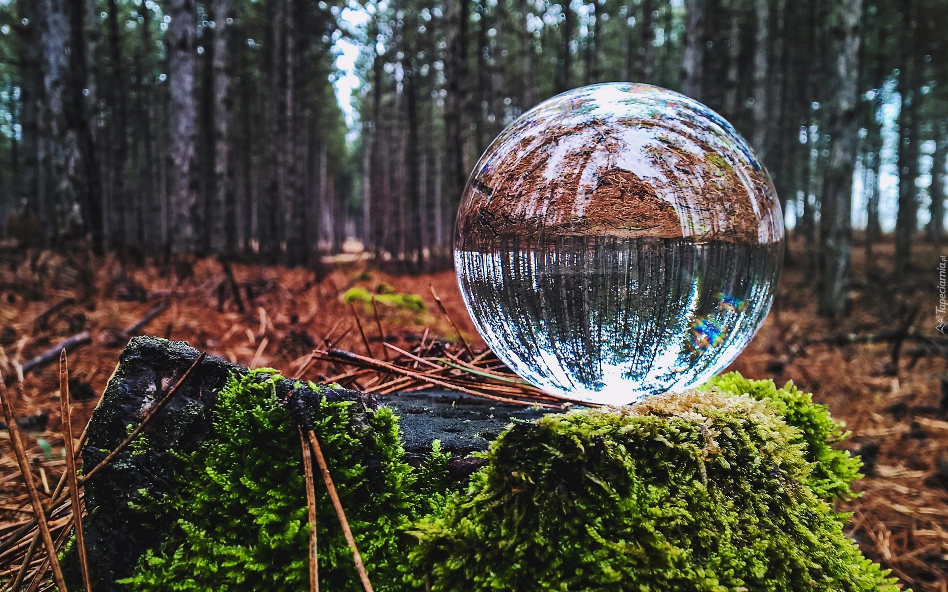 Edytor tapety: Las, Drzewa, Pień, Mech, Szklana, Kula