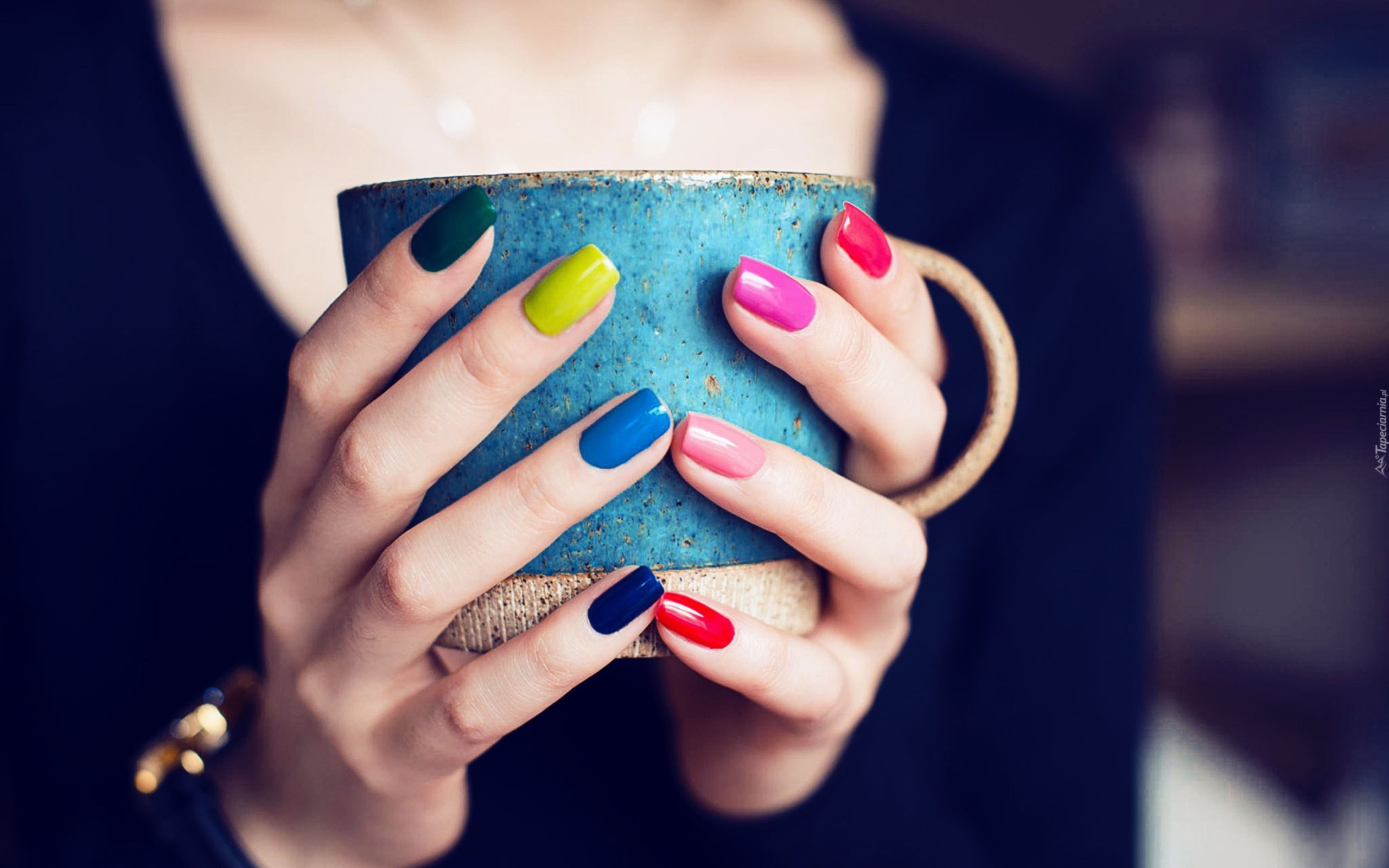 Edytor tapety: Kobieta, Kolorowe, Paznokcie, Manicure, Kubek