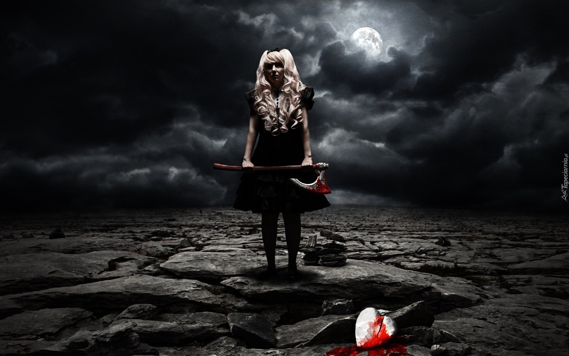 Edytor tapety: kobieta, Topór, Księżyc, Krew, Serce, Mrok, Chmury