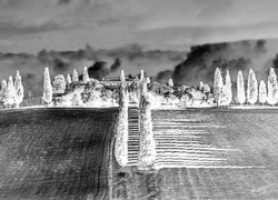 Edytor tapety: Pola, Cyprysy, Dom, Toskania