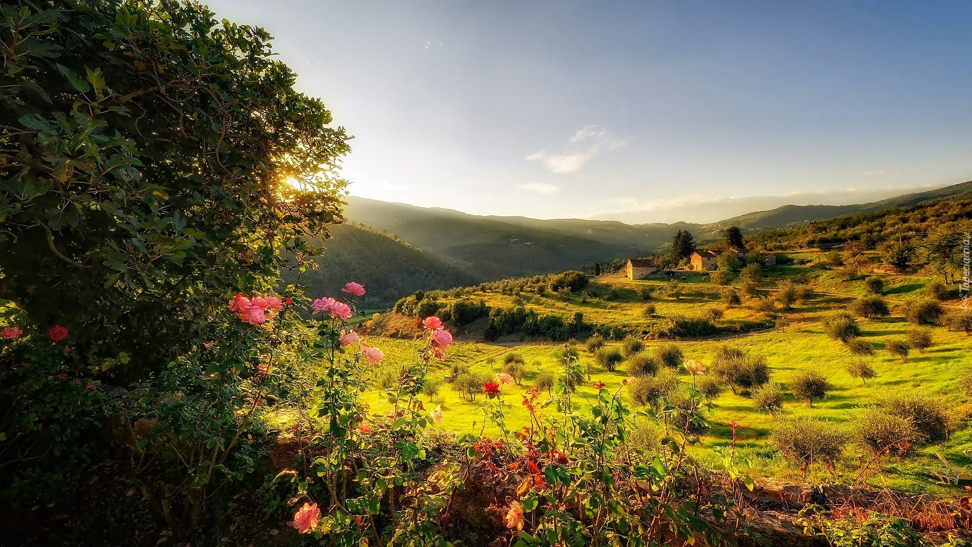 Edytor tapety: Wzgórza, Pola, Domy, Toskania