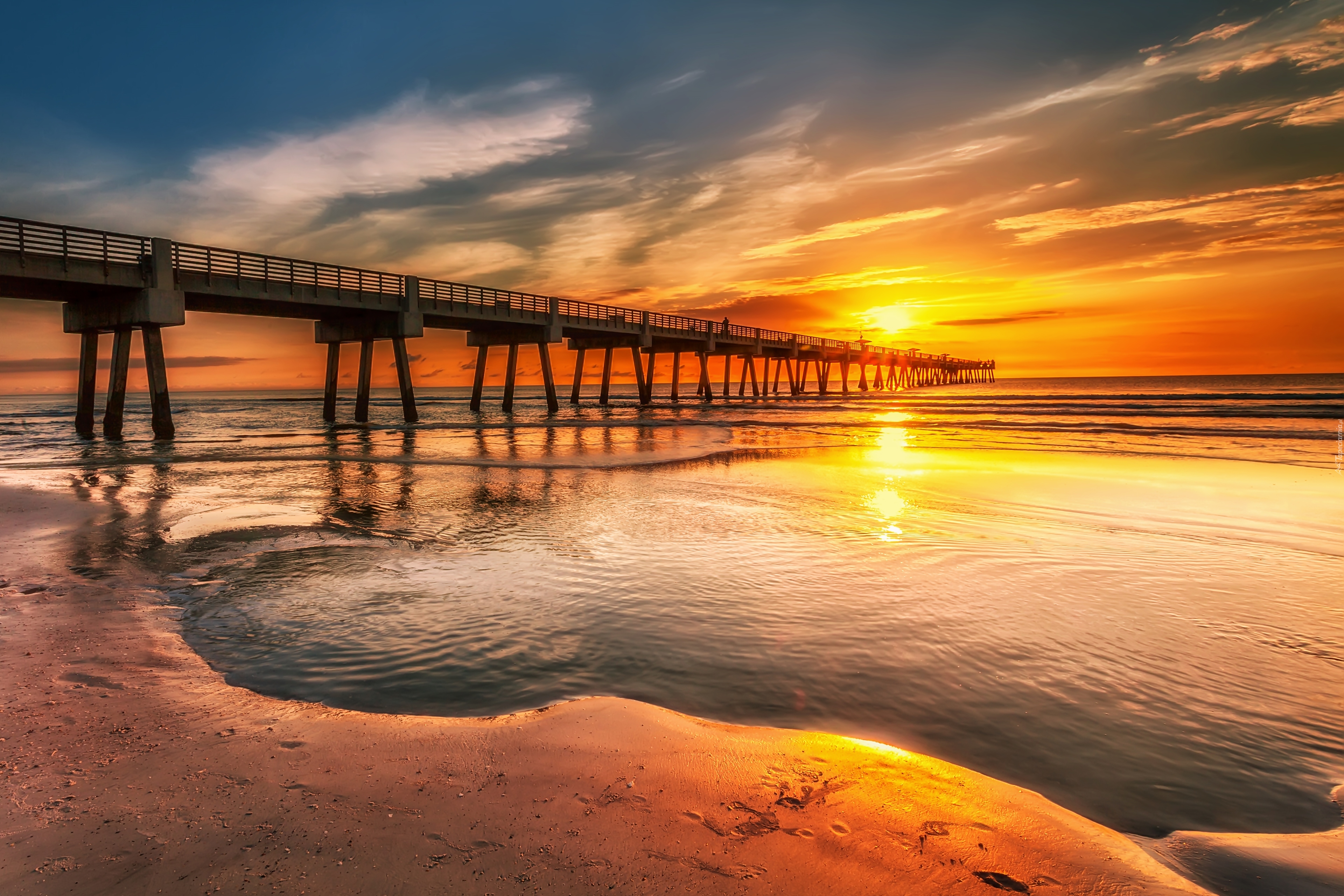 Edytor tapety: Molo, Morze, Zachód Słońca
