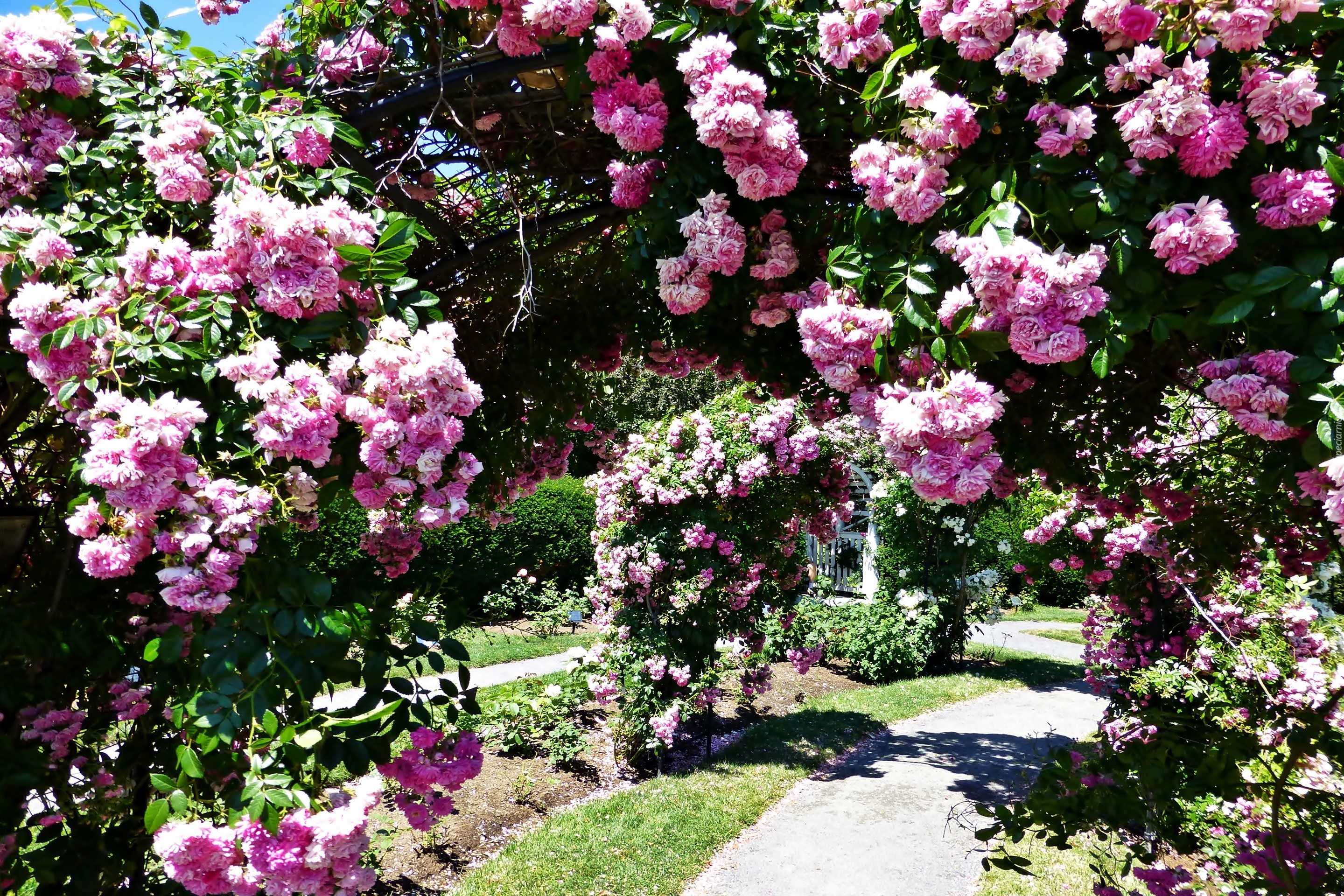 Edytor tapety: Lato, Ogród, Pnące, Róże, Światło, Cień
