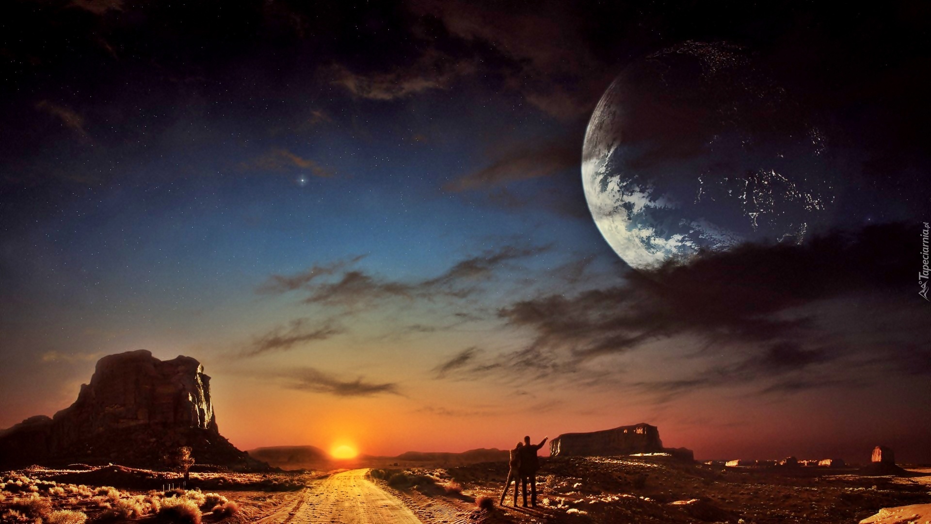 Edytor tapety: Fantasy, Droga, Zachód, Słońca, Planeta, Skały