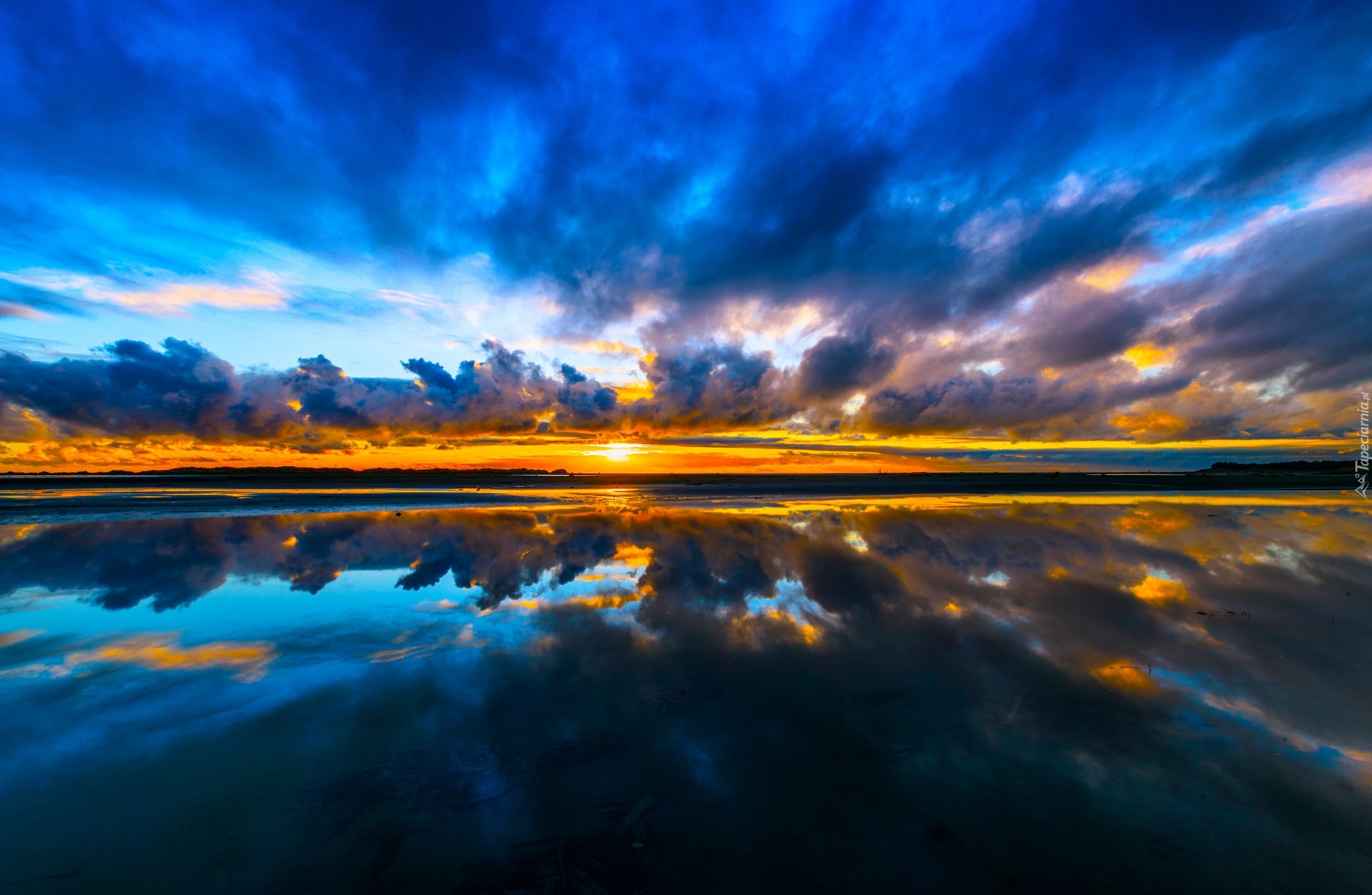 Edytor tapety: Zachód słońca, Morze, Chmury, Odbicie