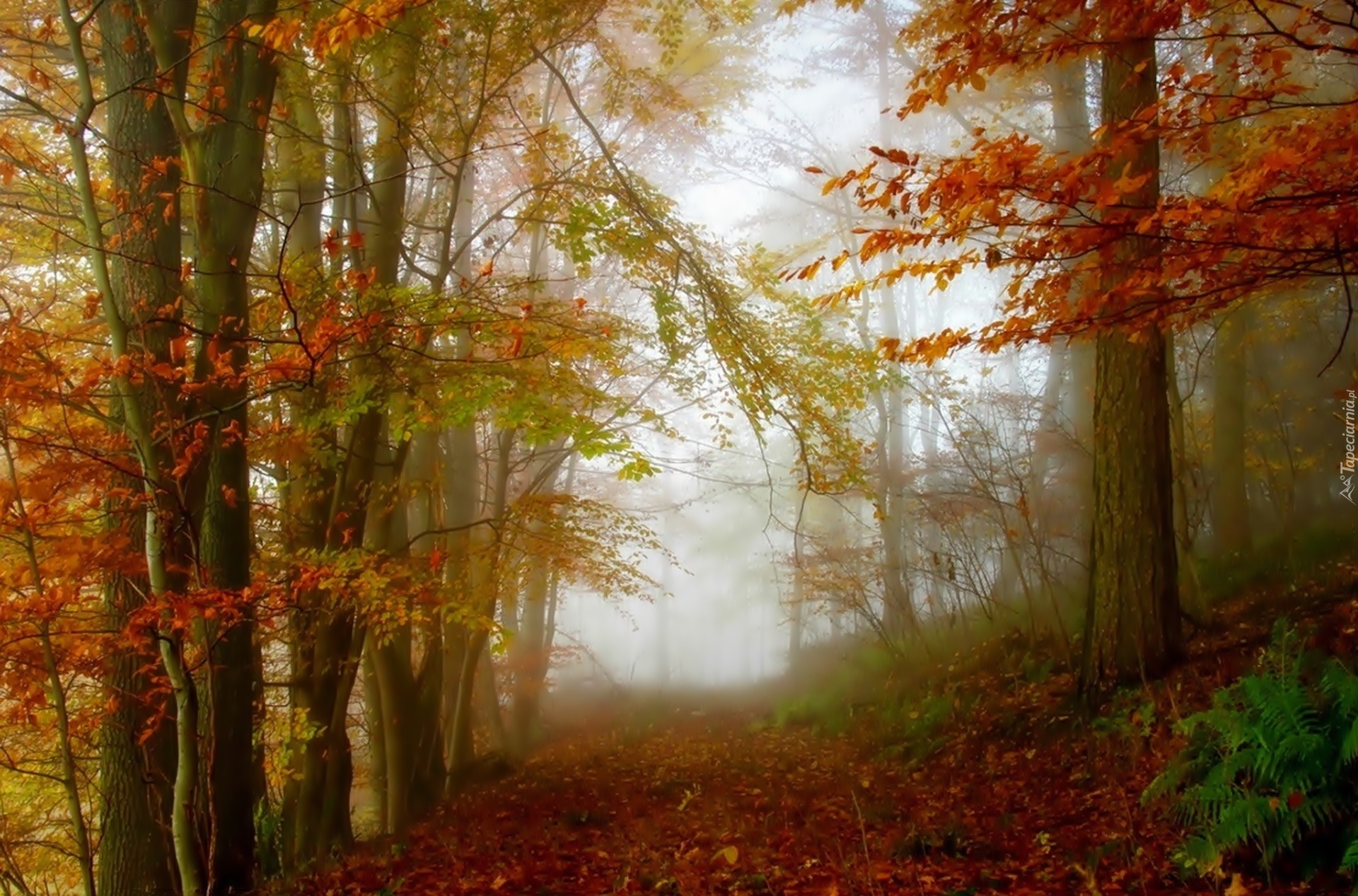 Edytor tapety: Jesień, Las, Droga, Mgła