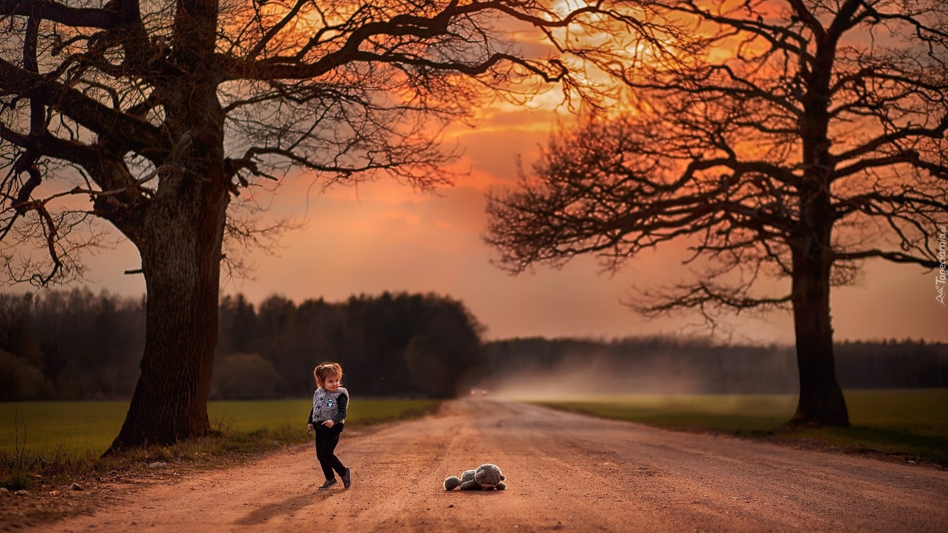 Edytor tapety: Jesień, Droga, Drzewa, Dziewczynka, Miś