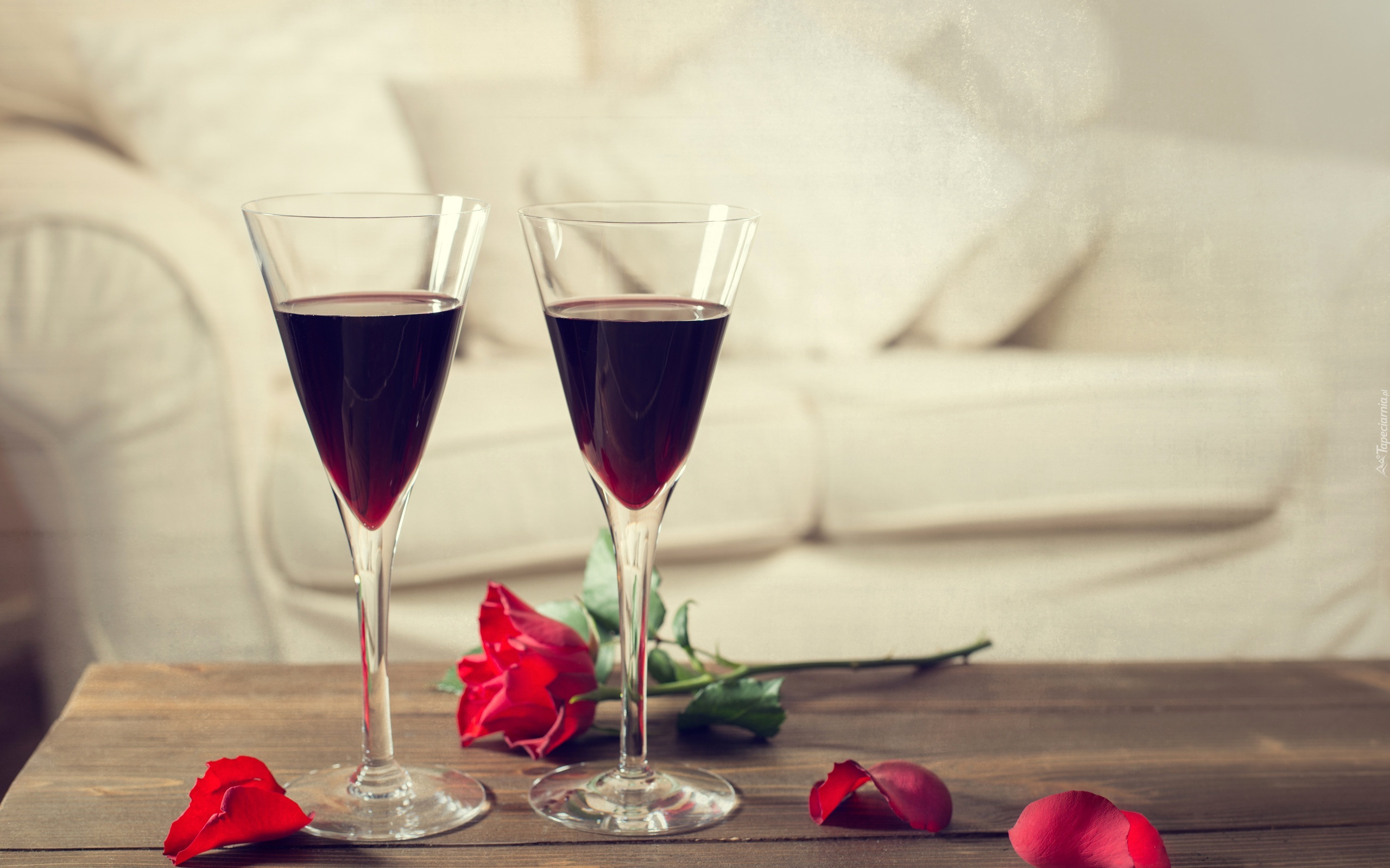 Edytor tapety: Wino, Czerwone, Kieliszki, Róża, Sofa