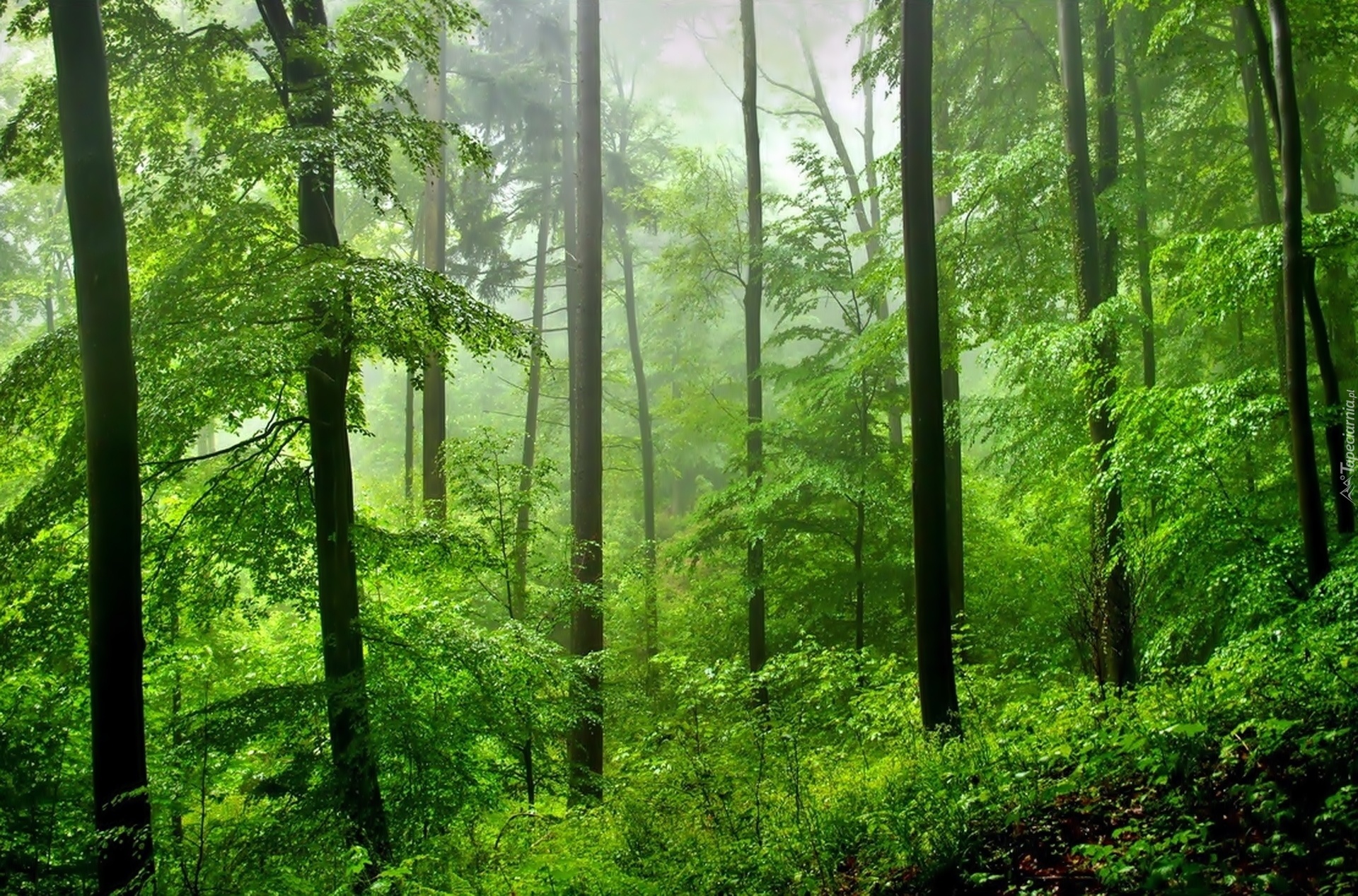 Edytor tapety: Zielony, Las, Mgła