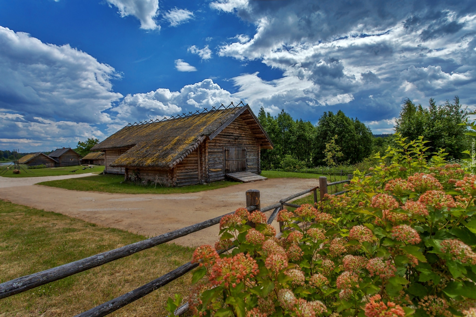 Edytor tapety: Hortensje, Chmury, Niebo, Szopy
