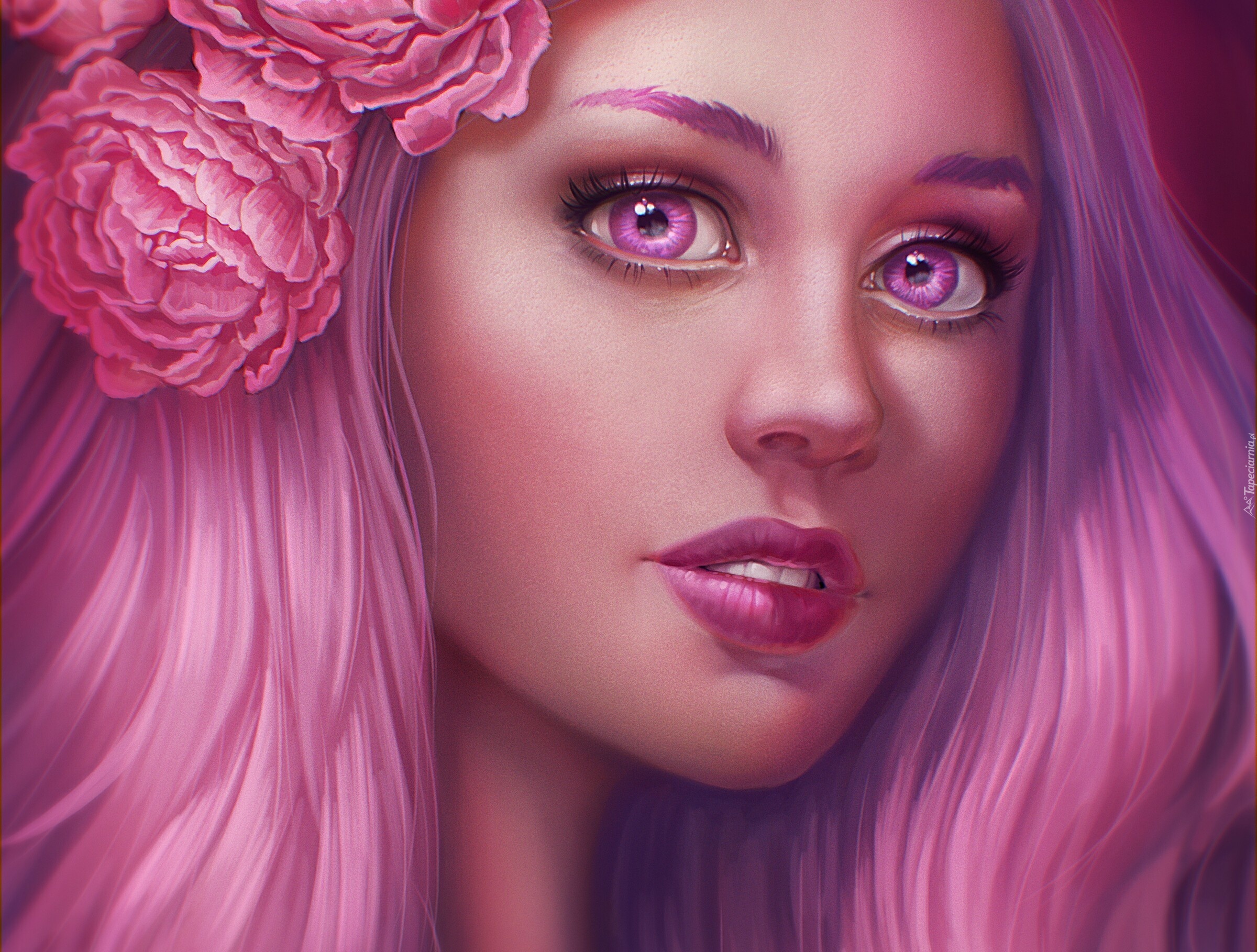 Edytor tapety: Kobieta, Różowe, Włosy, Kwiaty, Art