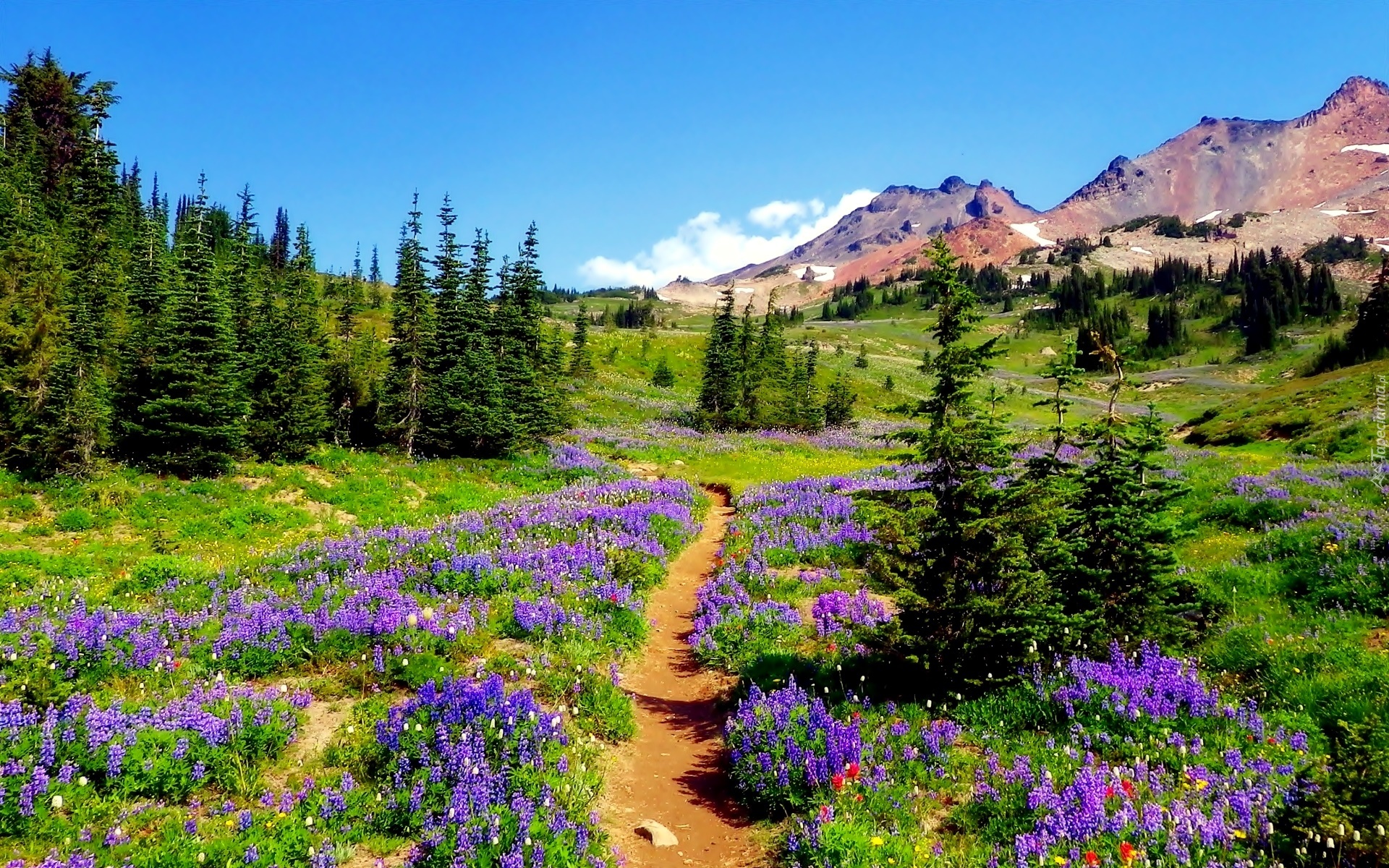 Edytor tapety: Góry, Ścieżka, Polne Kwiaty