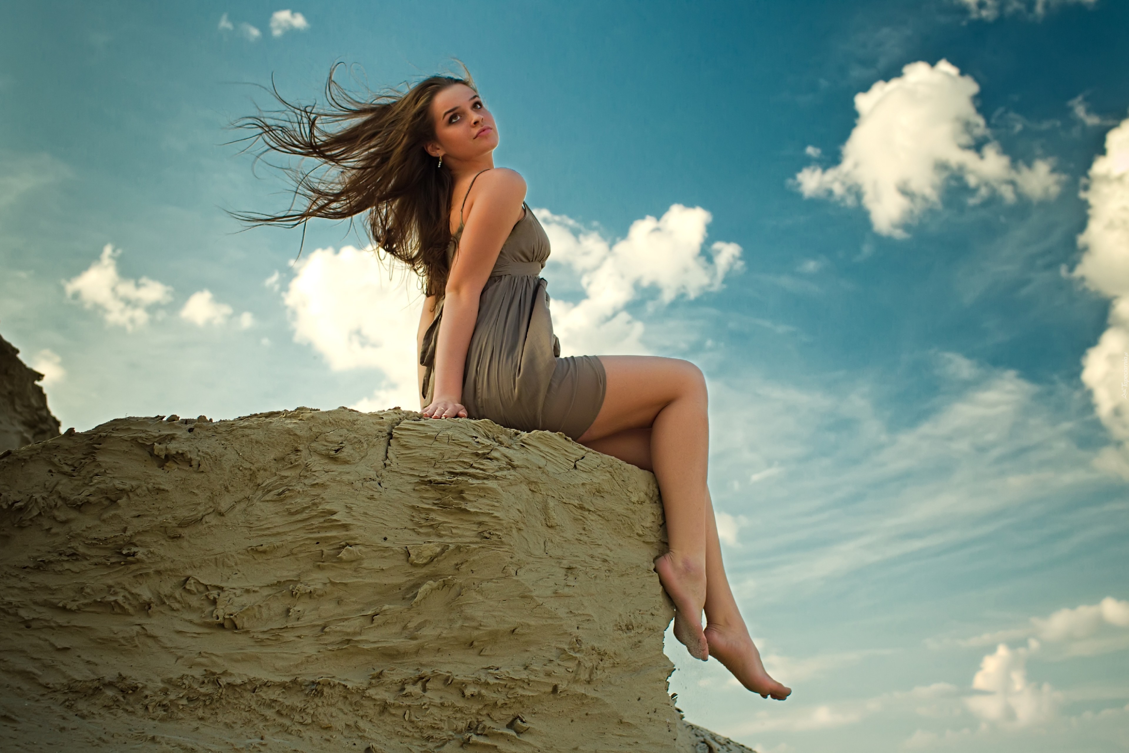 Edytor tapety: Kobieta, Skała