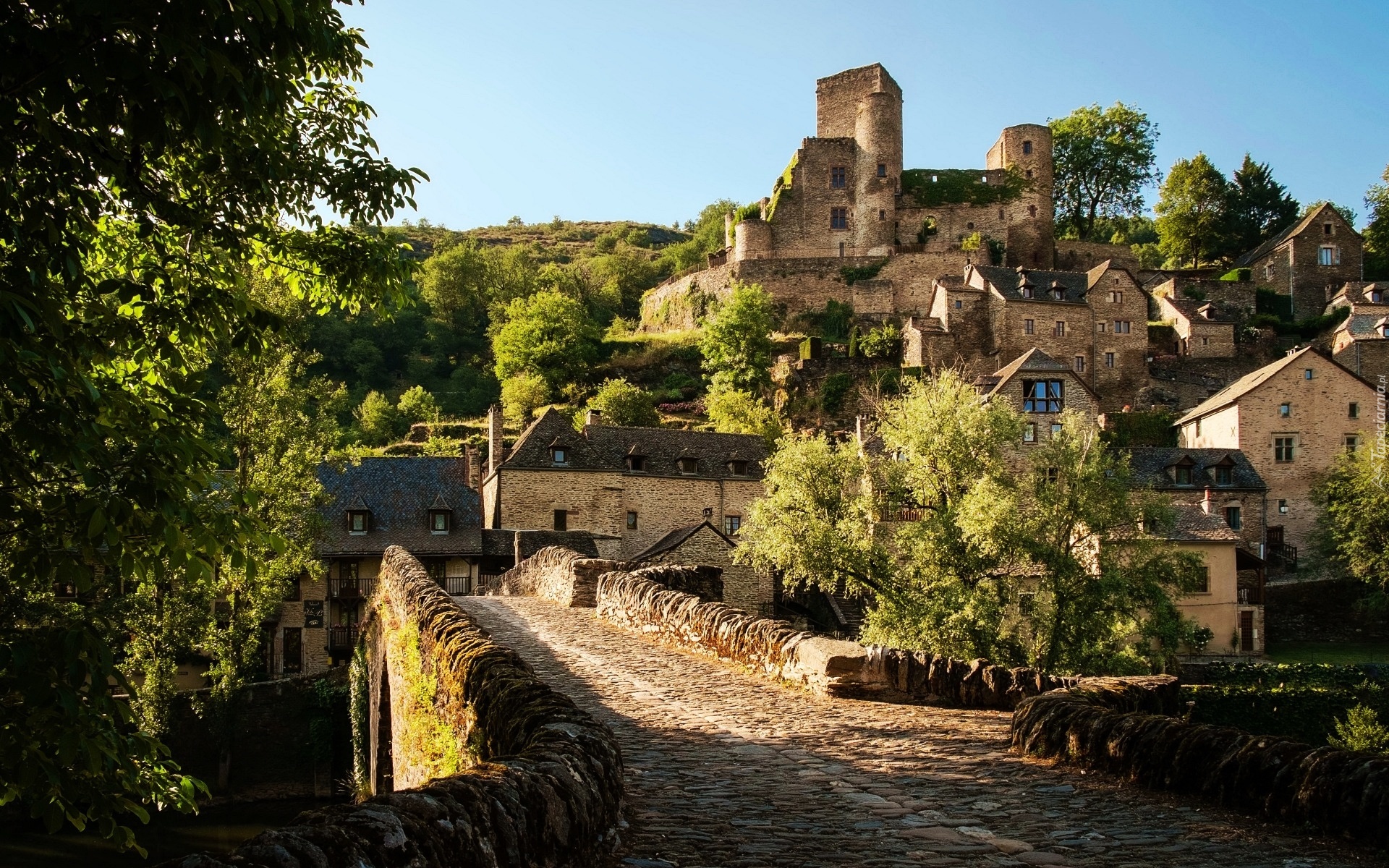 Edytor tapety: Zamek w Belcastel, Departament Aveyron, Francja, Domy, Droga