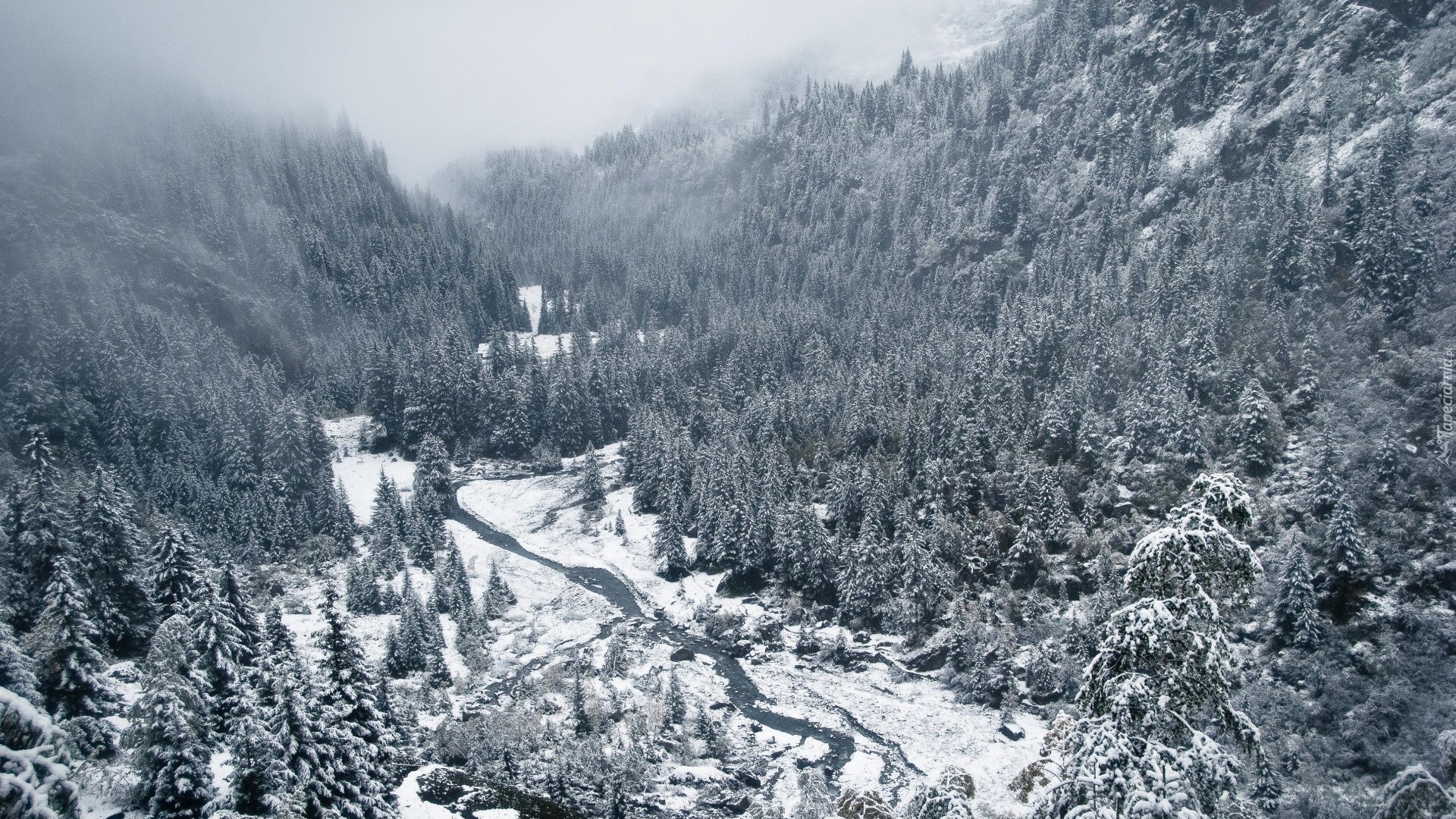 Edytor tapety: Dolina, Zima, Drzewa, Śnieg