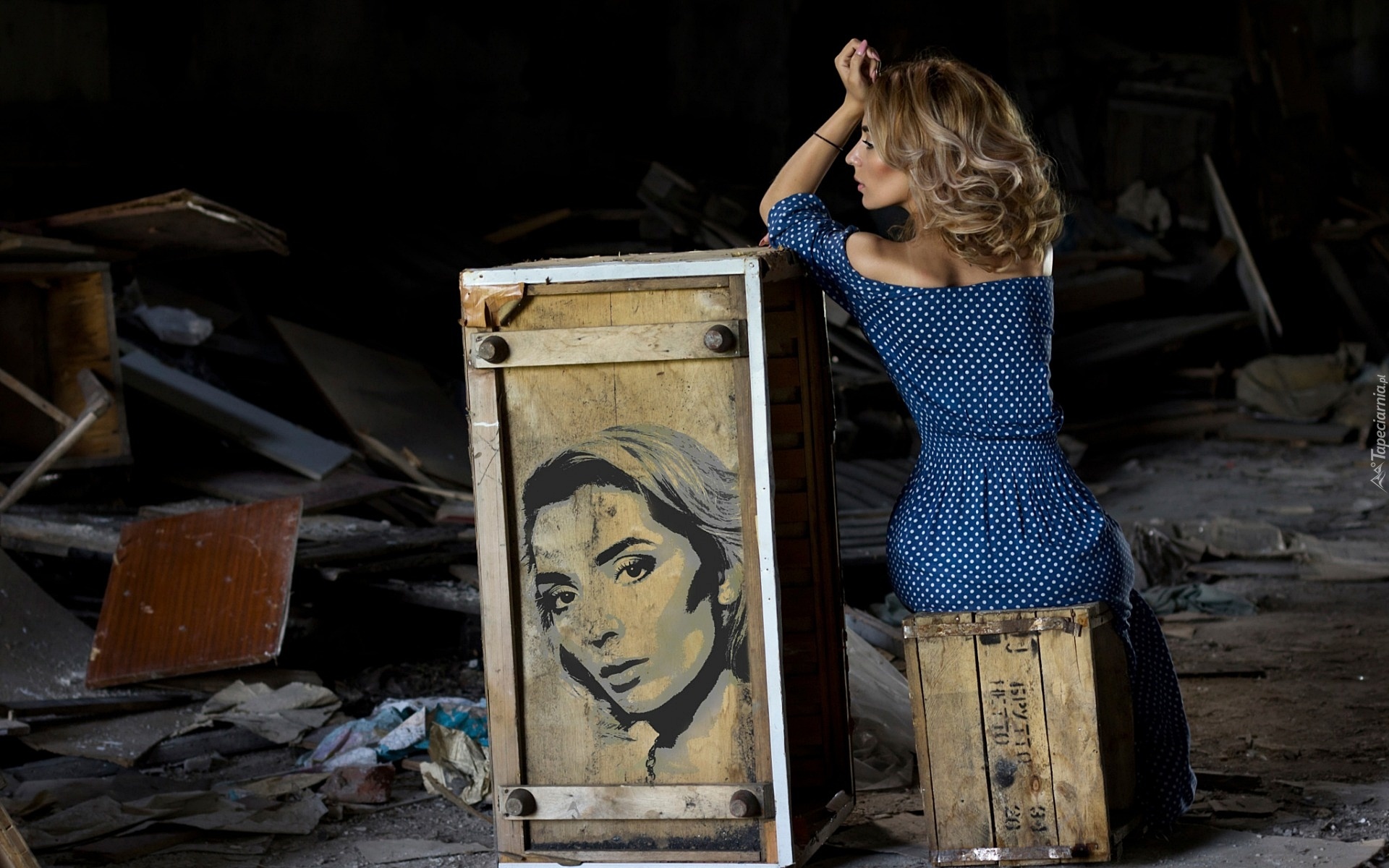 Edytor tapety: Dziewczyna, Skrzynie, Rysunek, Twarz