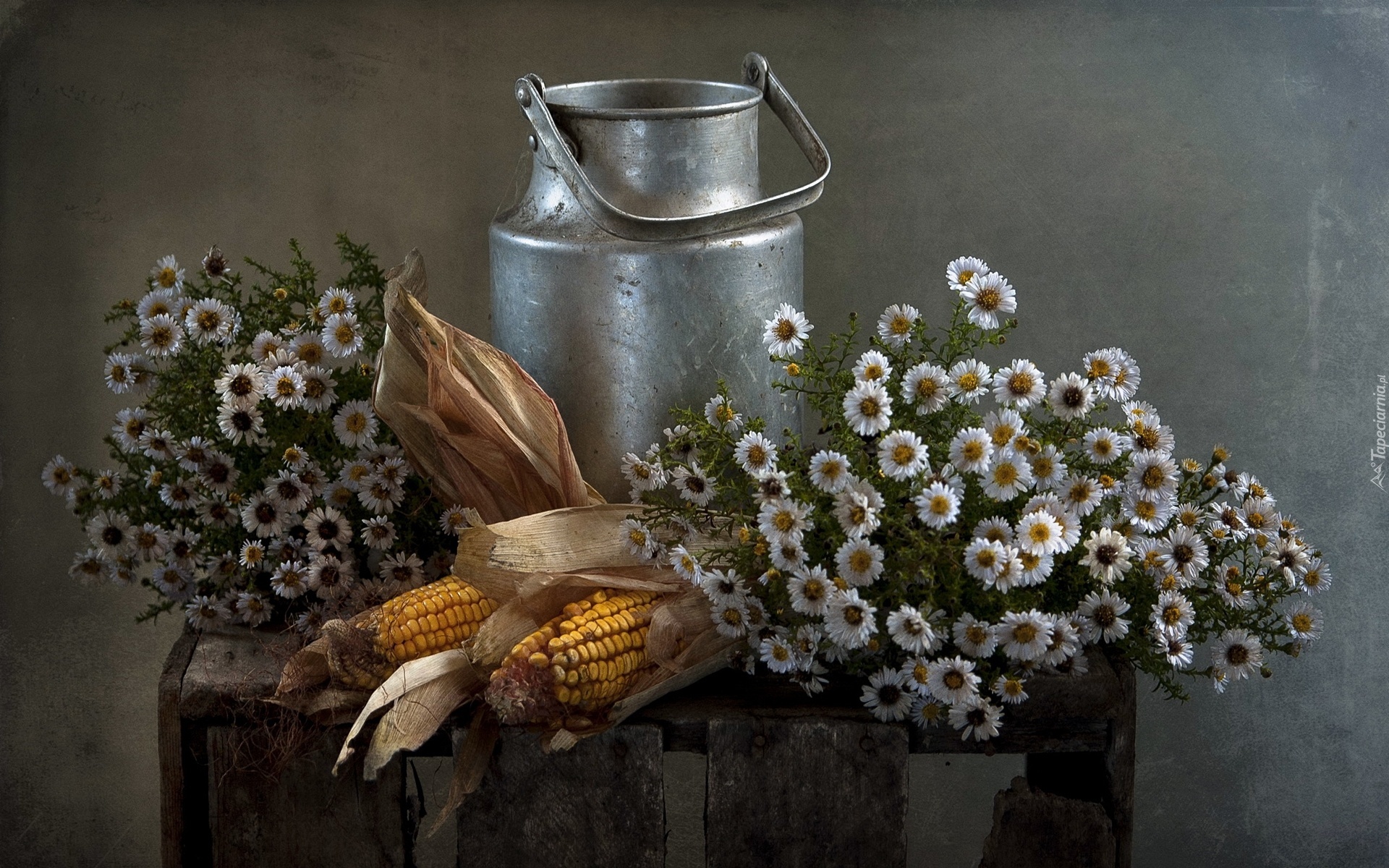 Edytor tapety: Kompozycja, Kwiaty, Kukurydza, Bańka