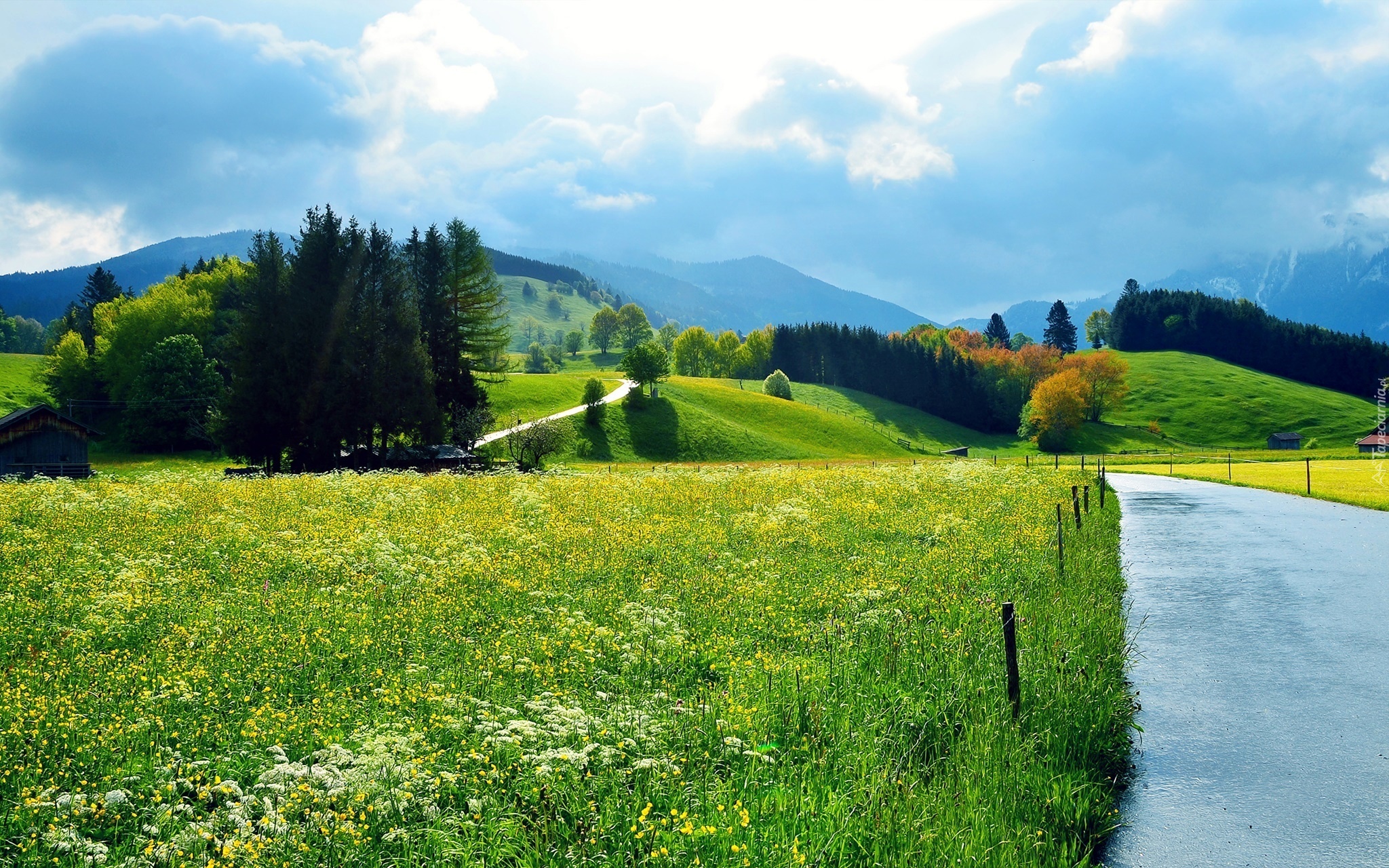 Edytor tapety: Droga, Łąki, Góry, Lato, Krajobraz