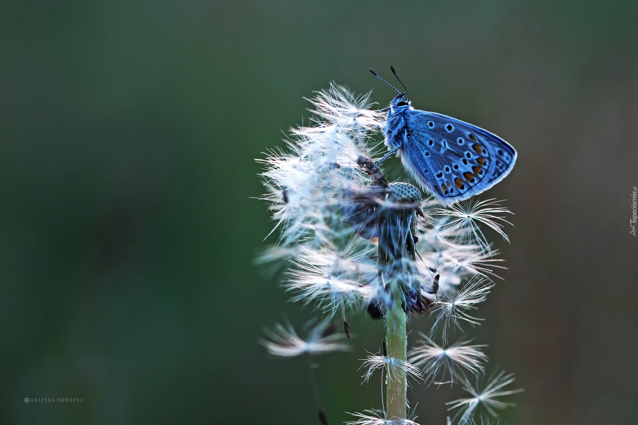 Edytor tapety: Modraszek, Motyl, Dmuchawiec, Mniszek Pospolity