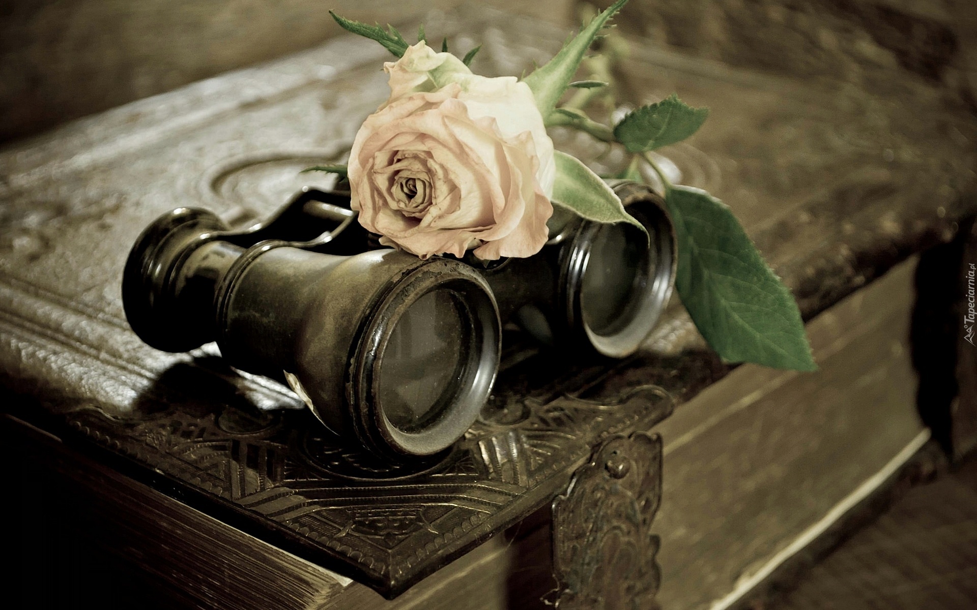 Edytor tapety: Kompozycja, Róża, Książka, Lornetka