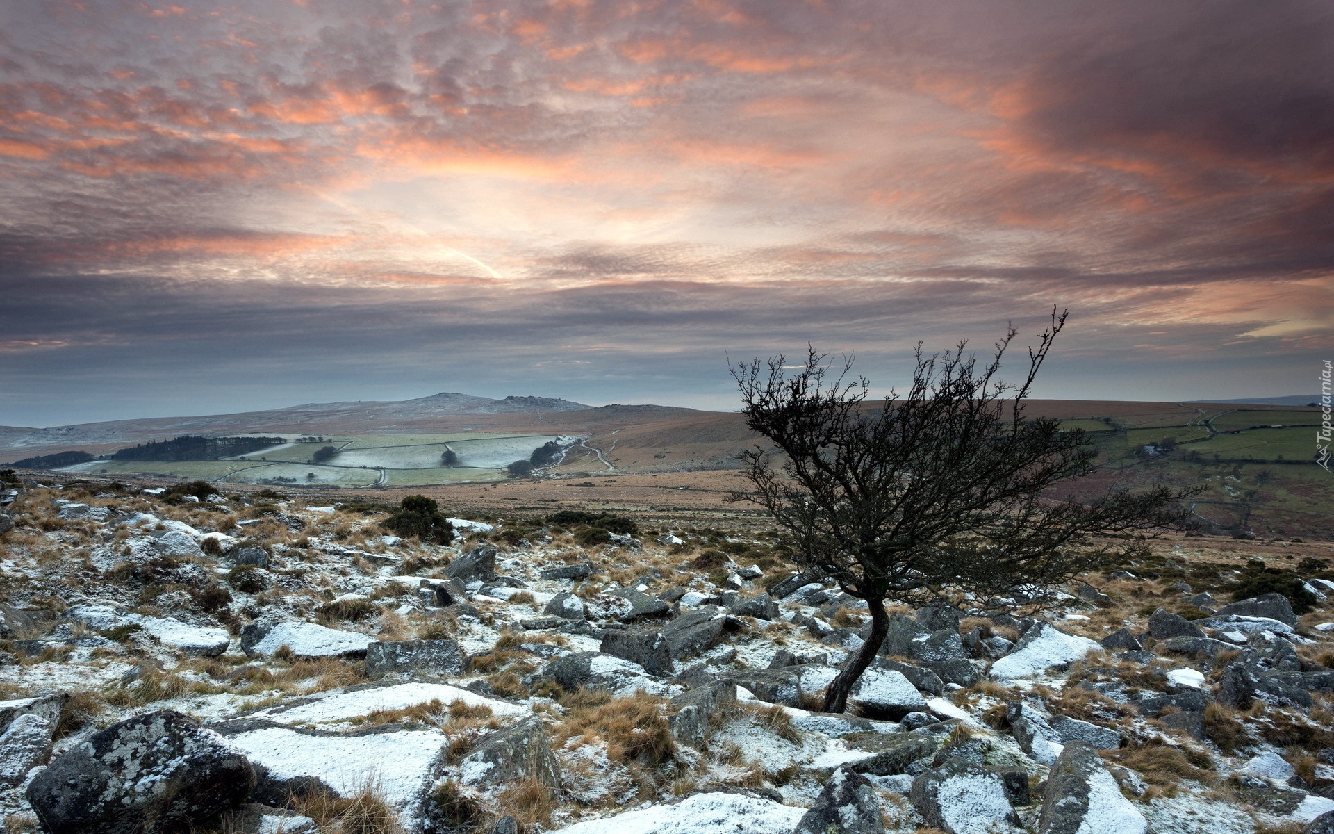 Edytor tapety: Kamienie, Śnieg, Drzewo, Niebo, Chmury