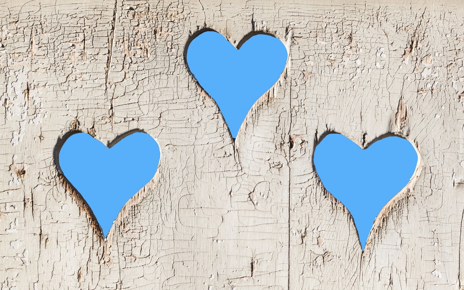 Edytor tapety: Płot, Dziury, Serca, Niebo
