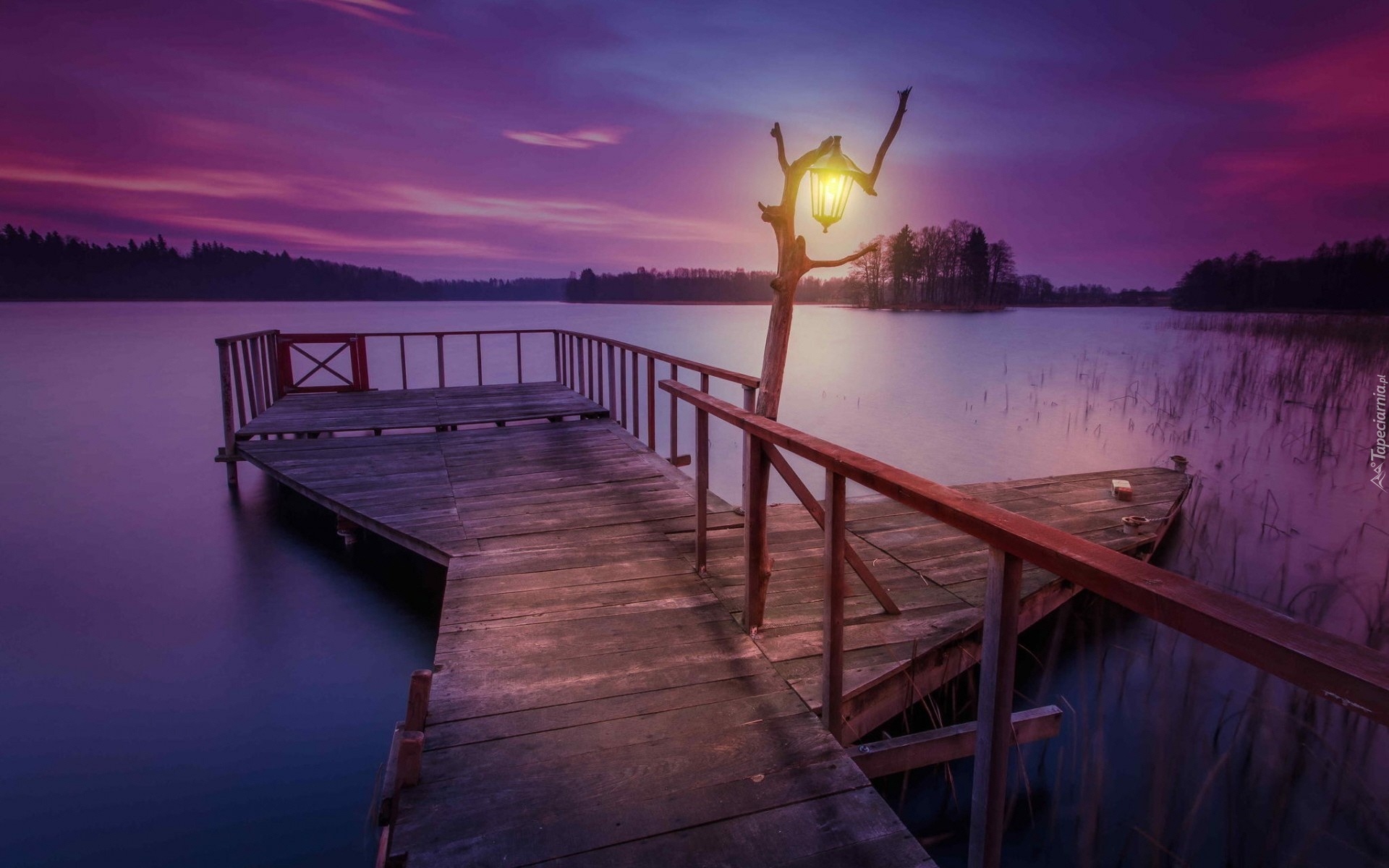 Edytor tapety: Jezioro, Noc, Pomost, Latarnia