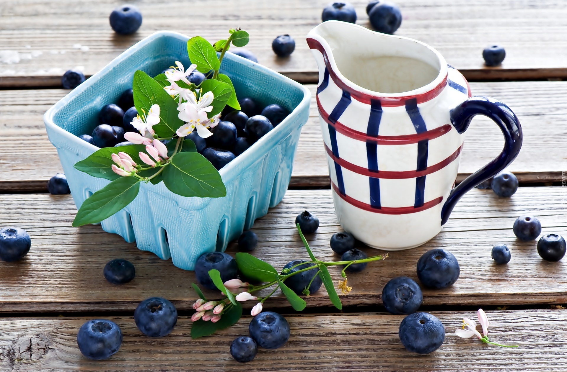 Edytor tapety: Jagody, Kwiaty, Dzbanek, Pojemnik
