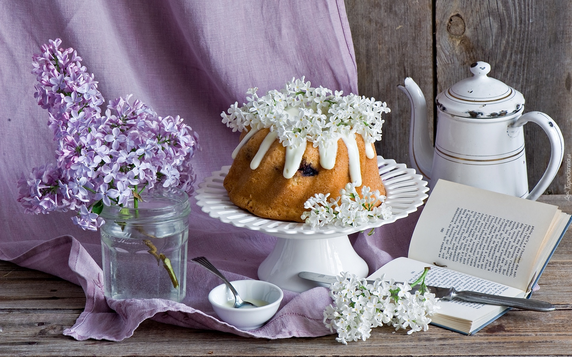 Edytor tapety: Ciasto, Książka, Bez, Kompozycja