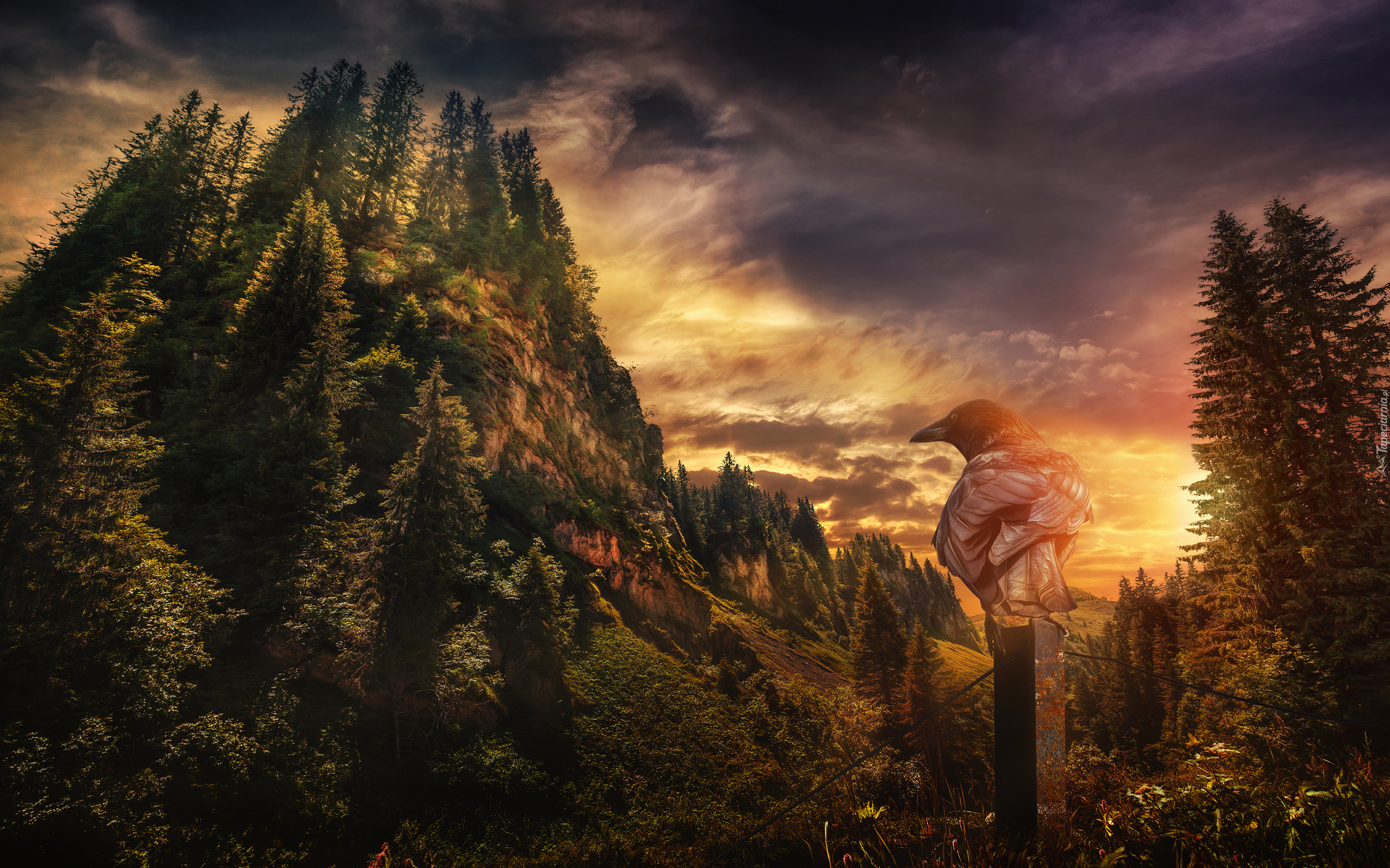 Edytor tapety: Ptak, Góry, Niebo, Zachód Słońca