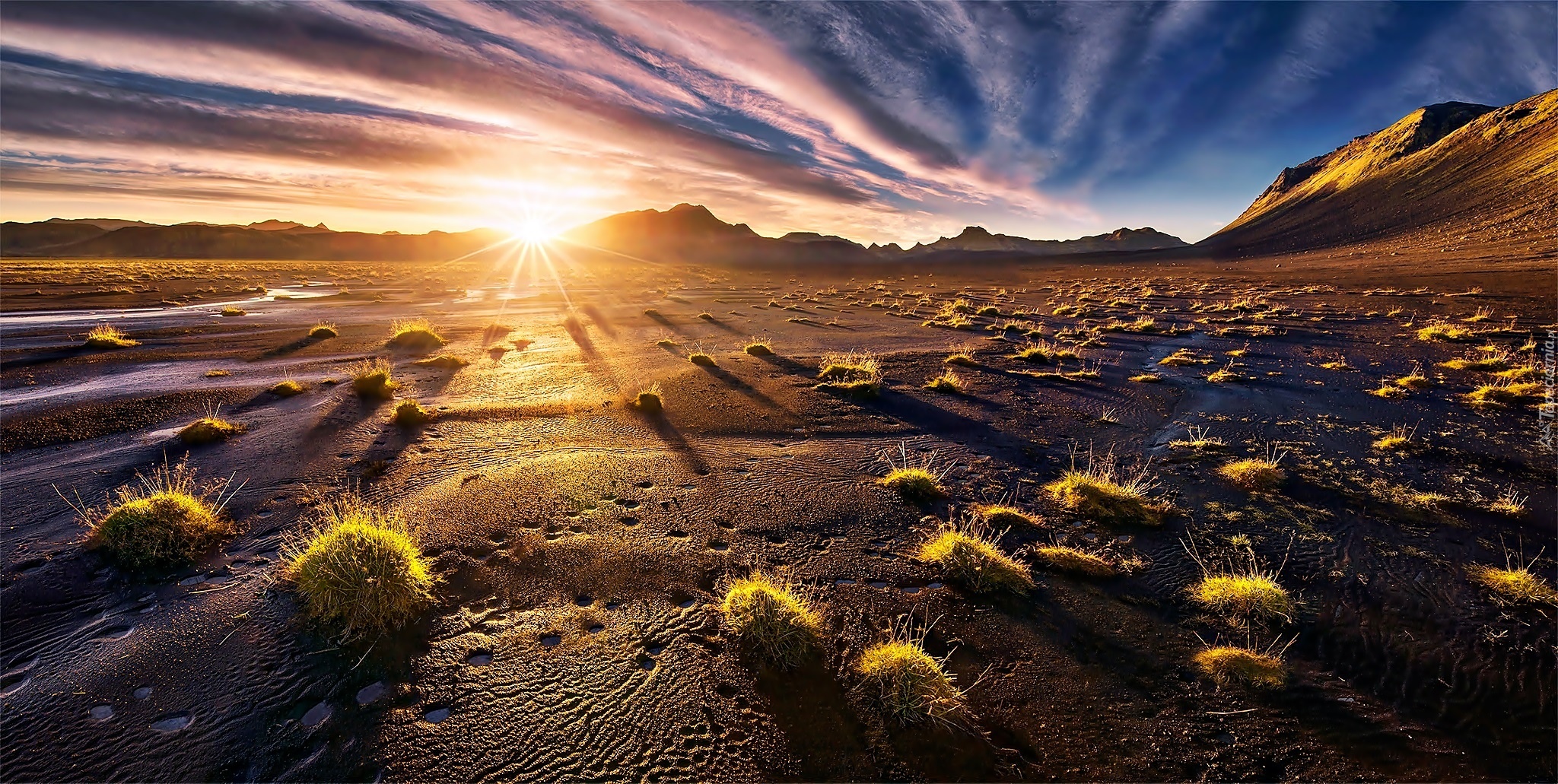 Edytor tapety: Pustynia, Świt, Kępy, Traw