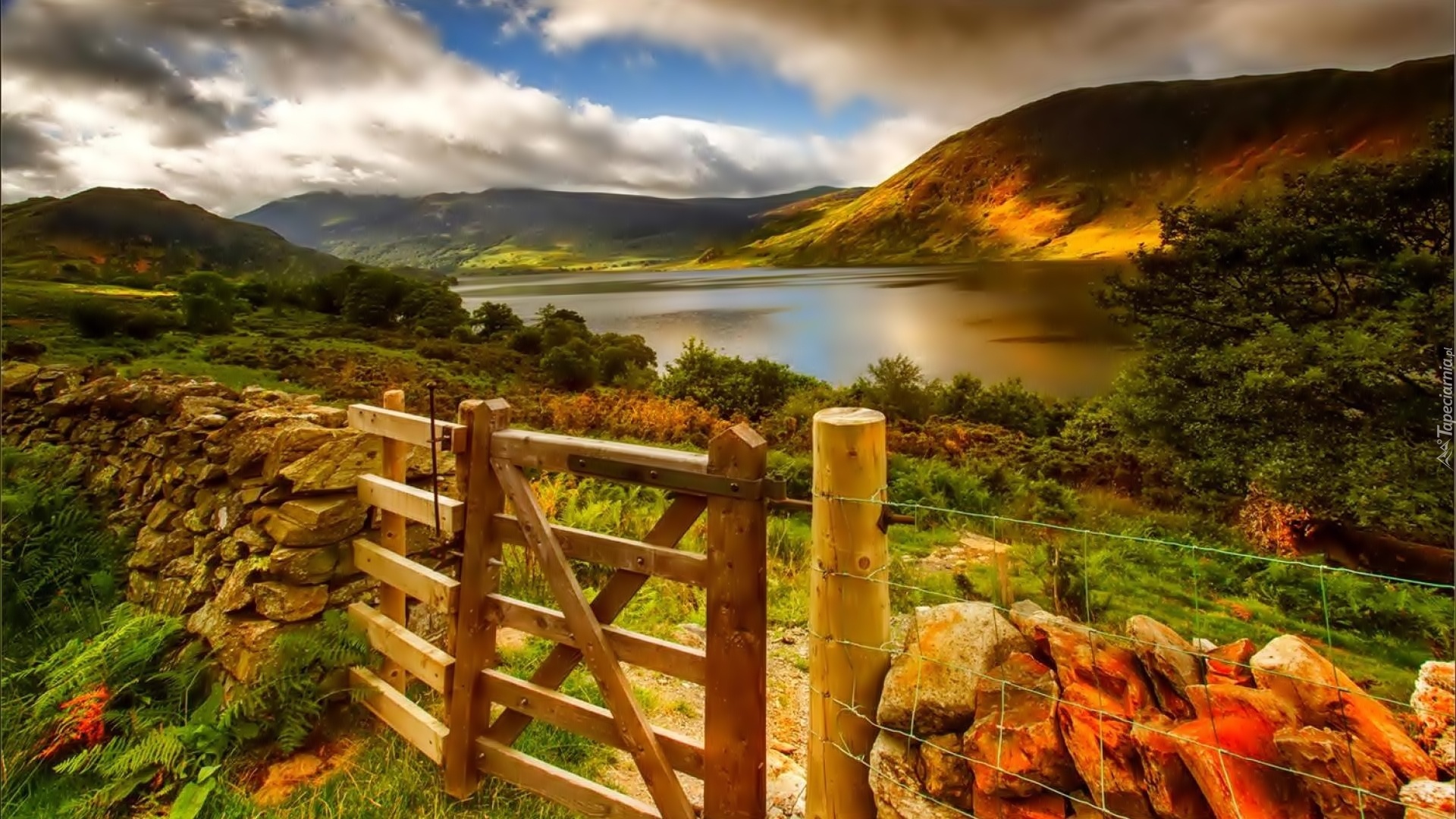 Edytor tapety: Góry, Jezioro, Chmury, Płot