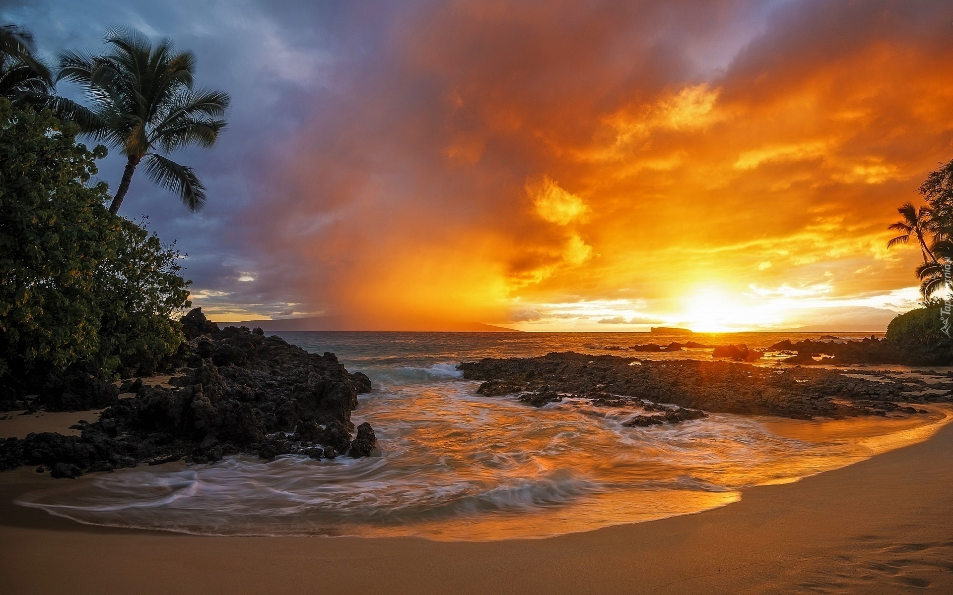 Edytor tapety: Zachód Słońca. Morze, Plaża, Wybrzeże