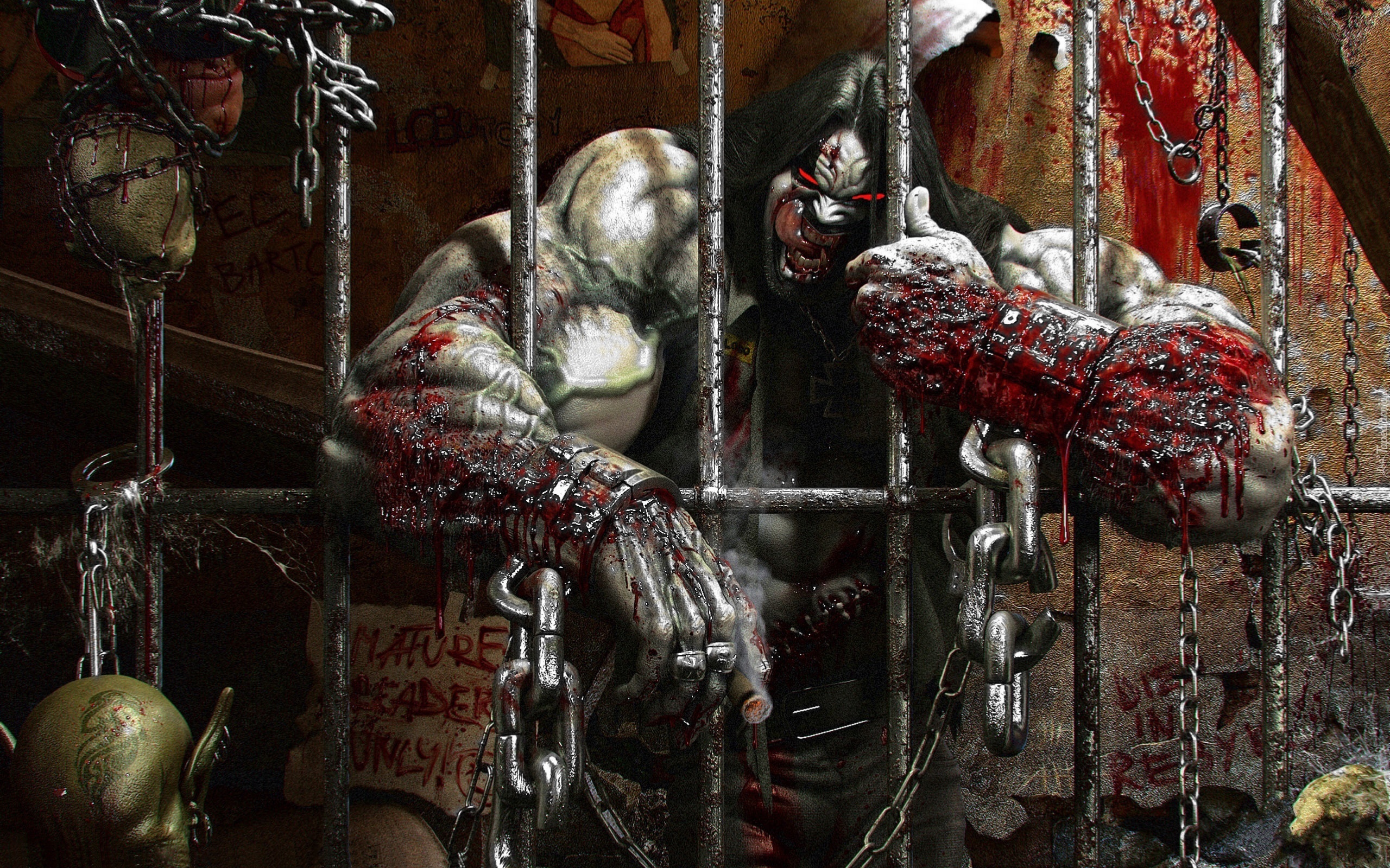 Edytor tapety: Kraty, Łańcuchy, Krew, Męska, Postać