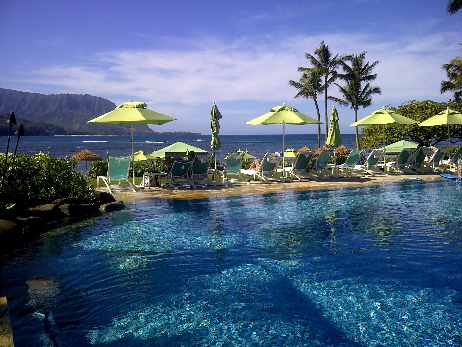 Edytor tapety: Morze, Palmy, Leżaki, Parasole, Basen, Wakacje