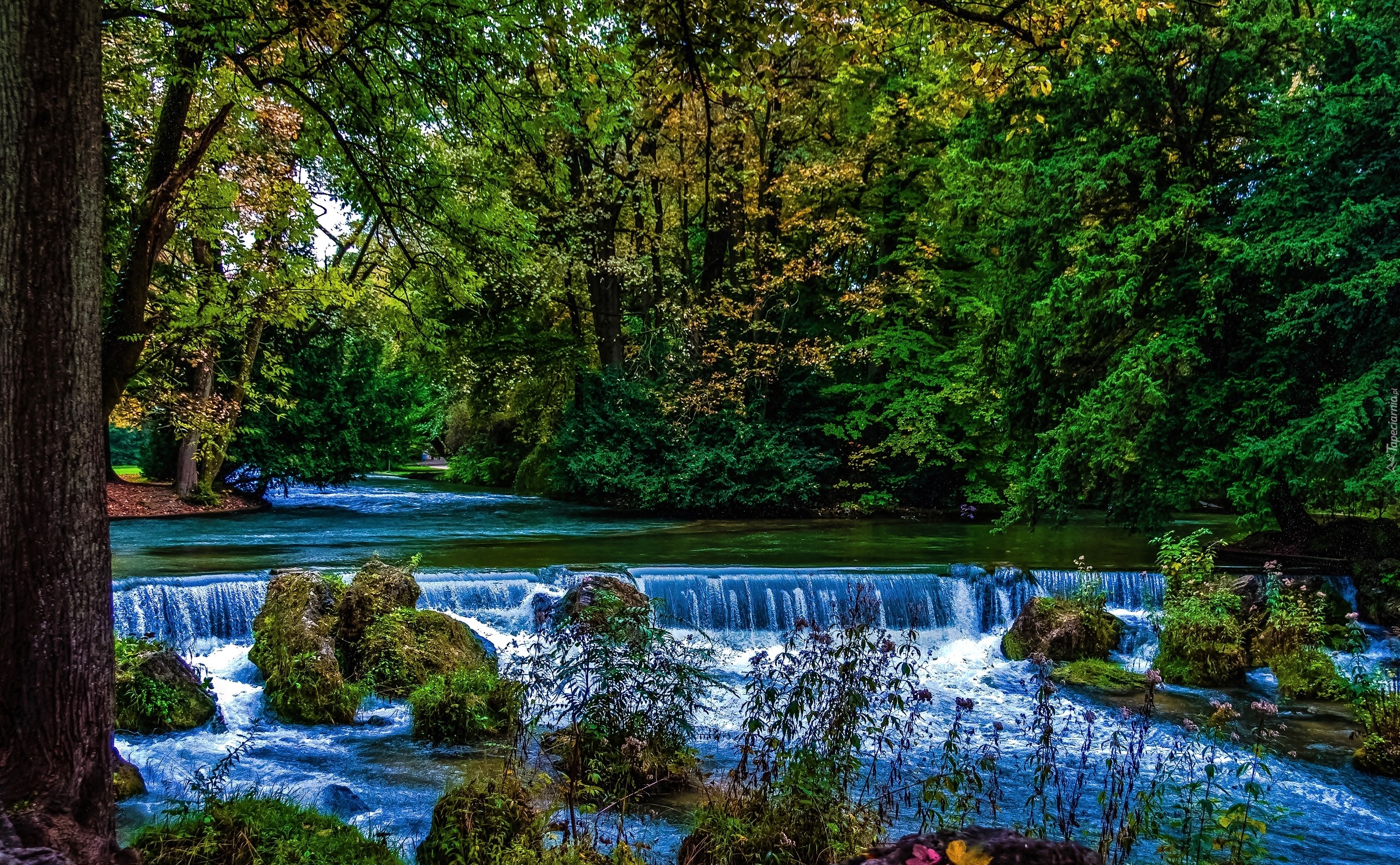 Edytor tapety: Rzeczka, Drzewa, Krzewy, Wodospad