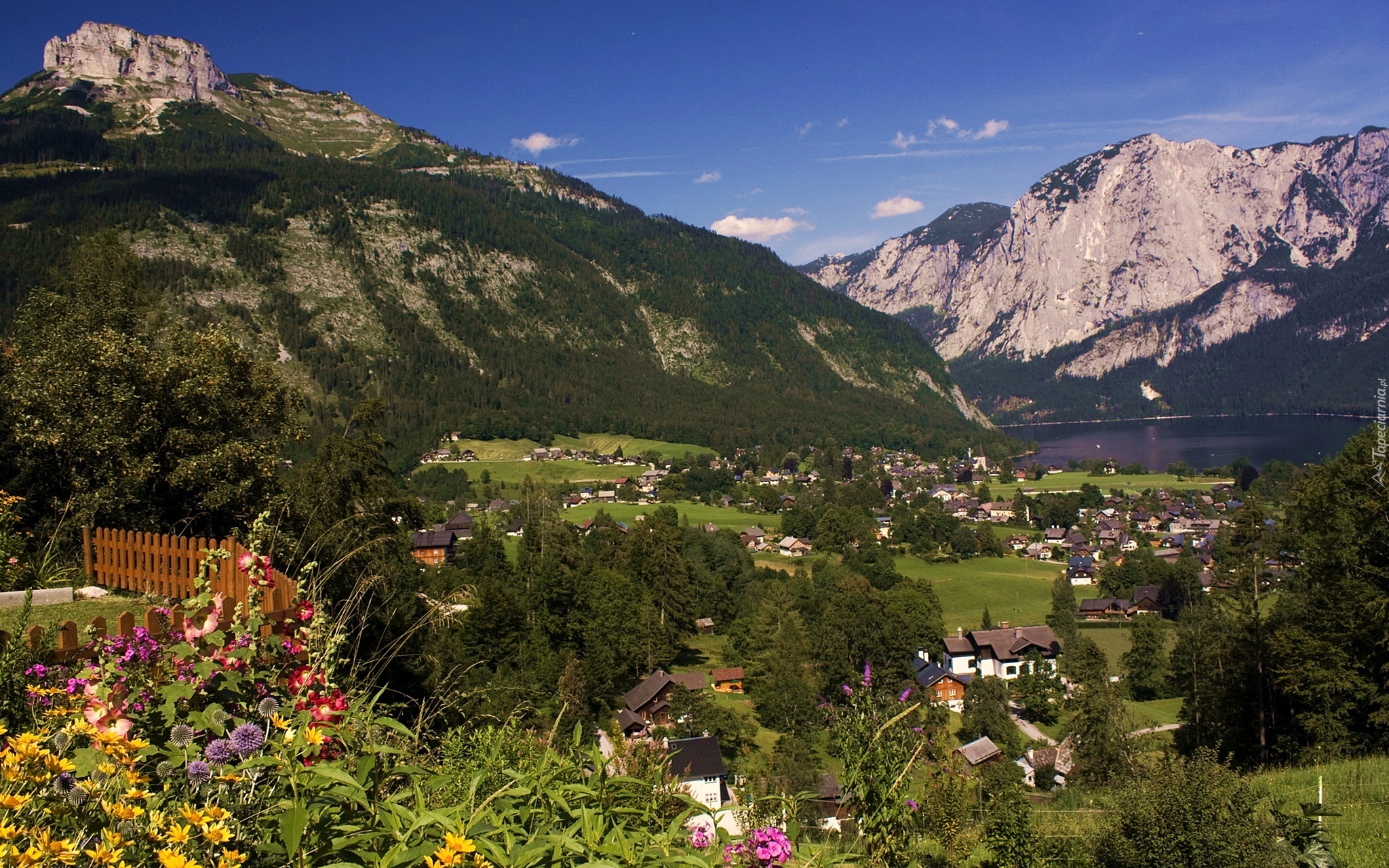 Edytor tapety: Góry, Jezioro, Domy, Austria, Wieś