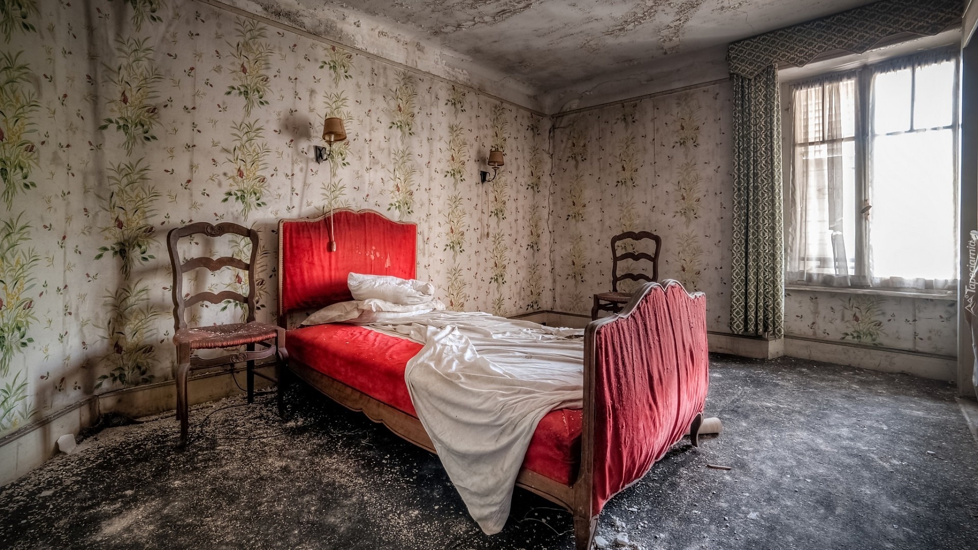 Edytor tapety: Zaniedbany, Pokój, Łóżko, Krzesła