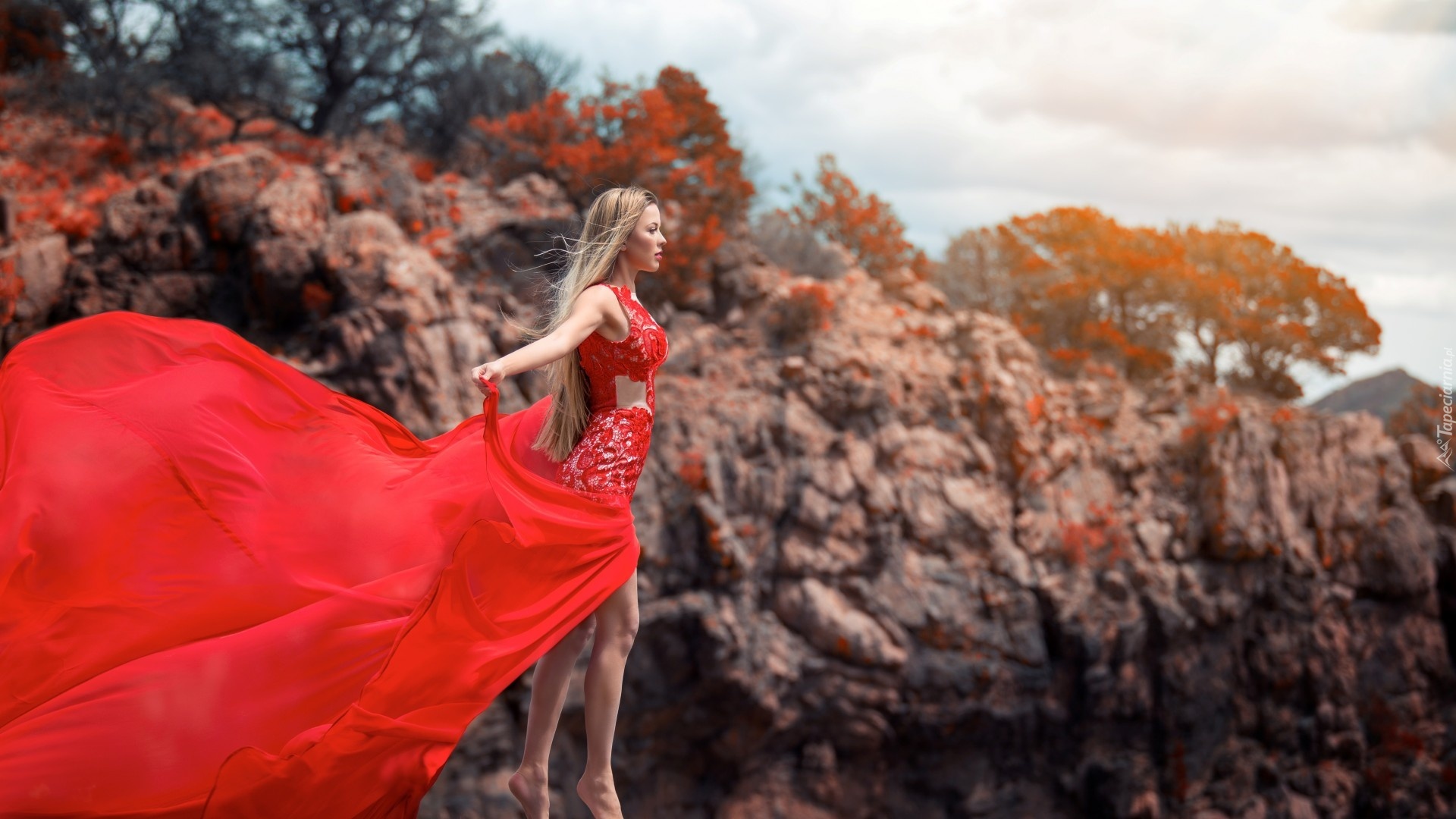 Edytor tapety: Blondynka, Czerwona, Sukienka
