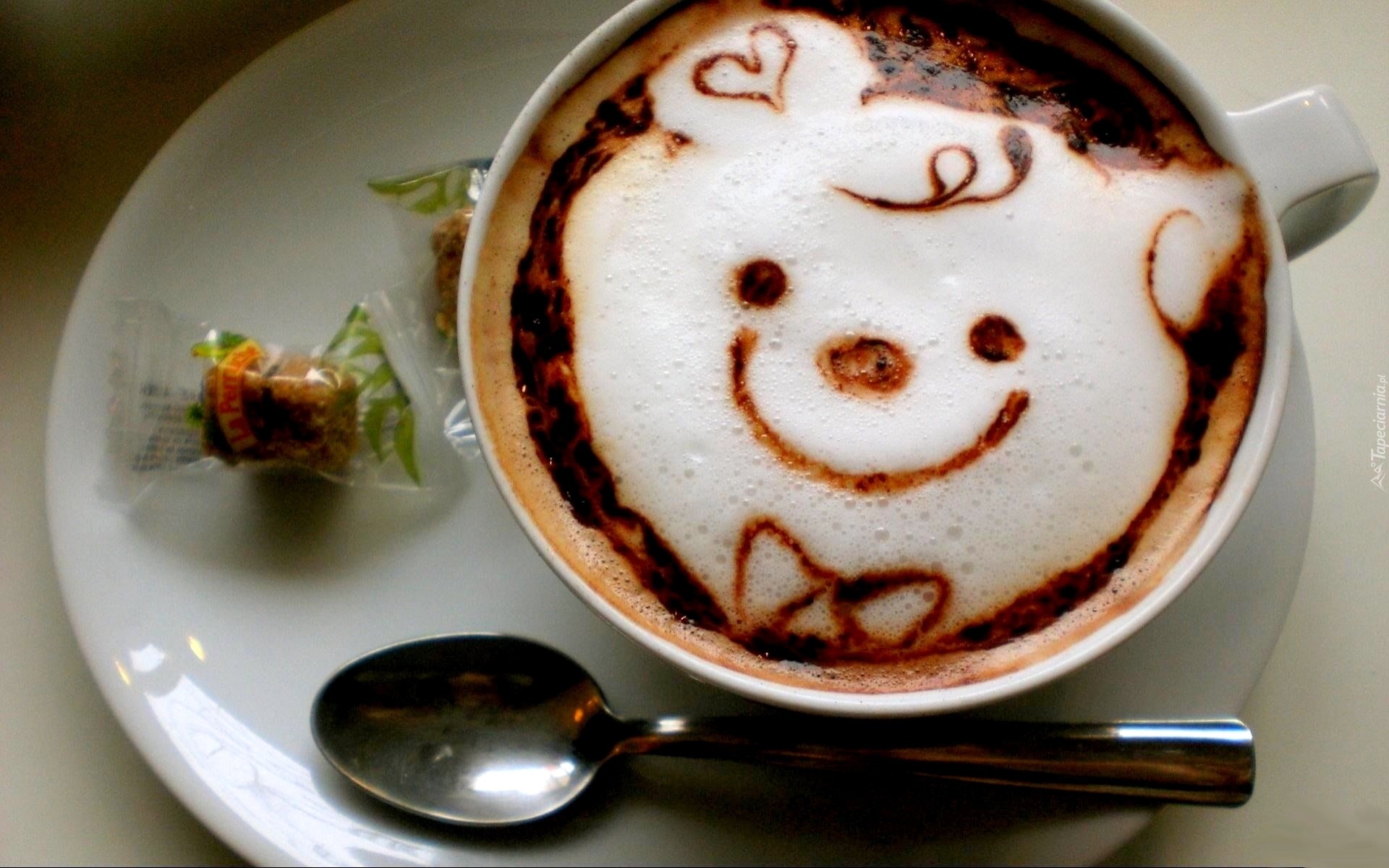 Edytor tapety: Kawa, Pianka, Talerzyk, Łyżeczka
