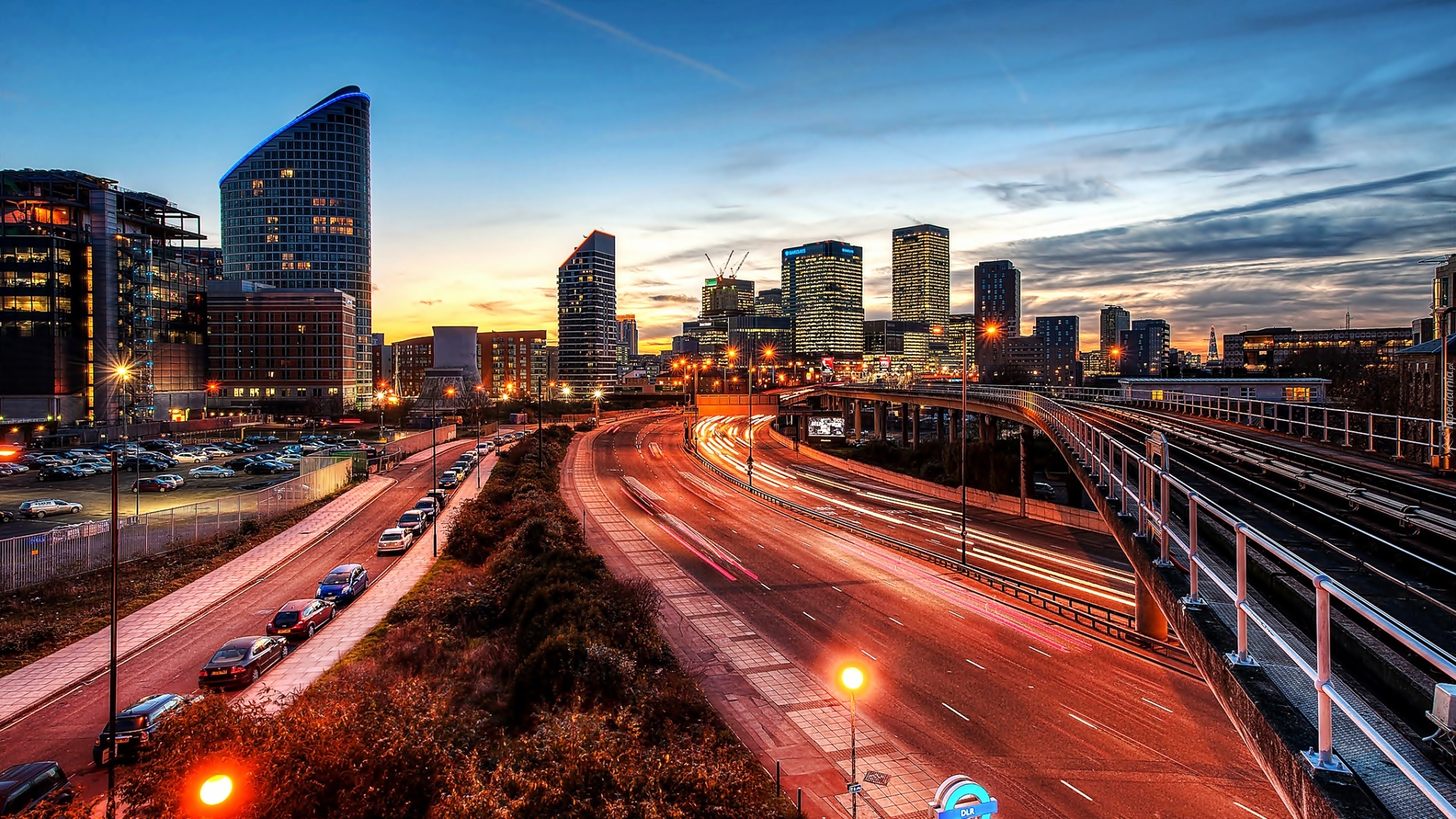 Edytor tapety: Drapacze Chmur, Arterie, Świt, Panorama, Londyn nocą