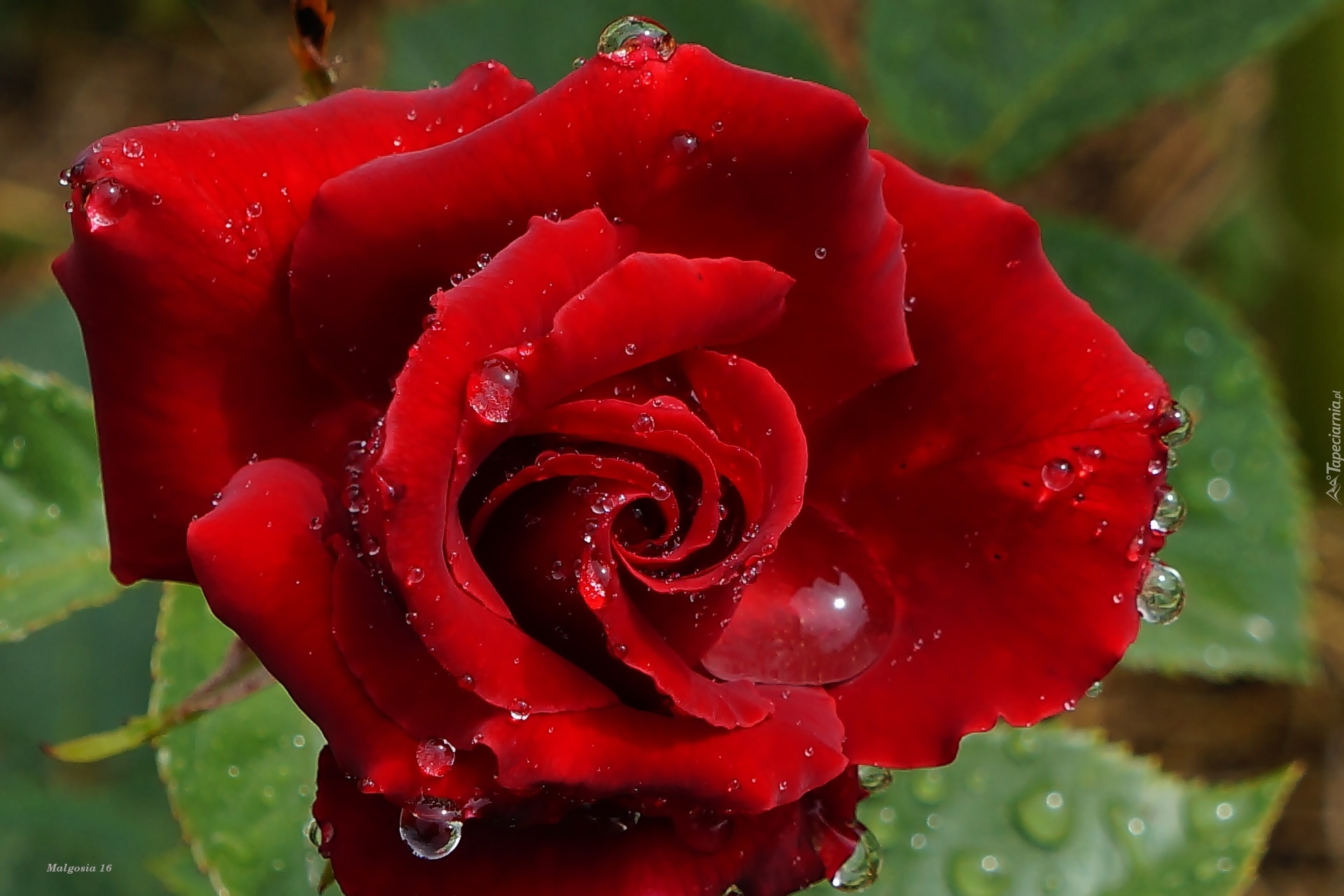 Edytor tapety: Czerwona, Róża, Krople