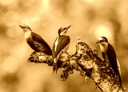 Edytor tapety: Trzy, Kolorowe, Ptaki, Konar