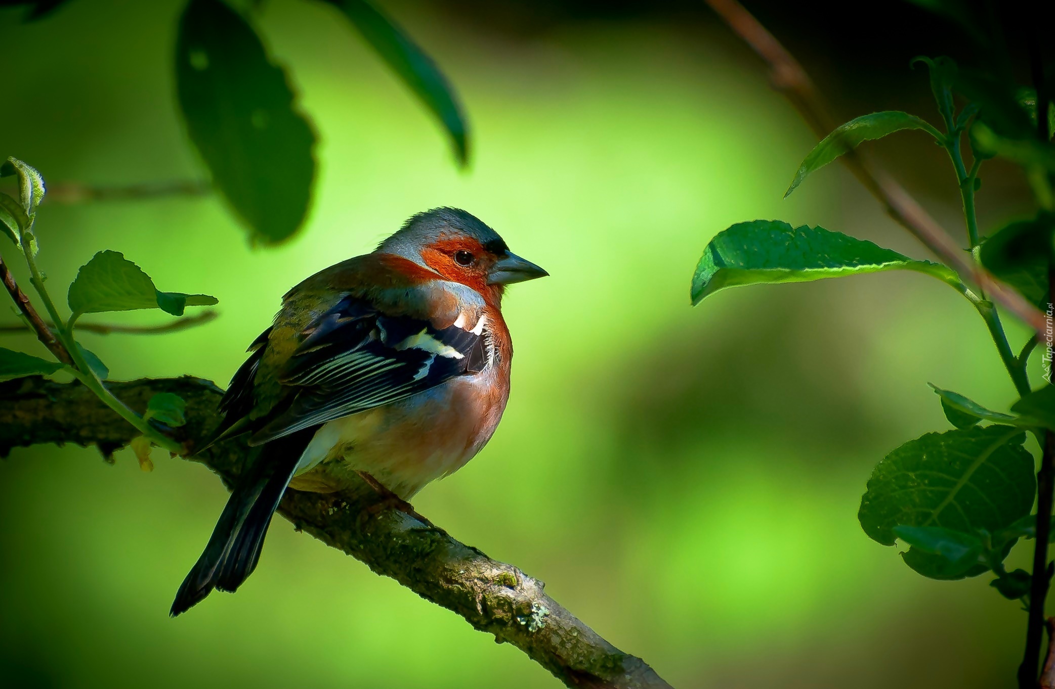 Edytor tapety: Ptak, Zięba, Gałąź, Liście