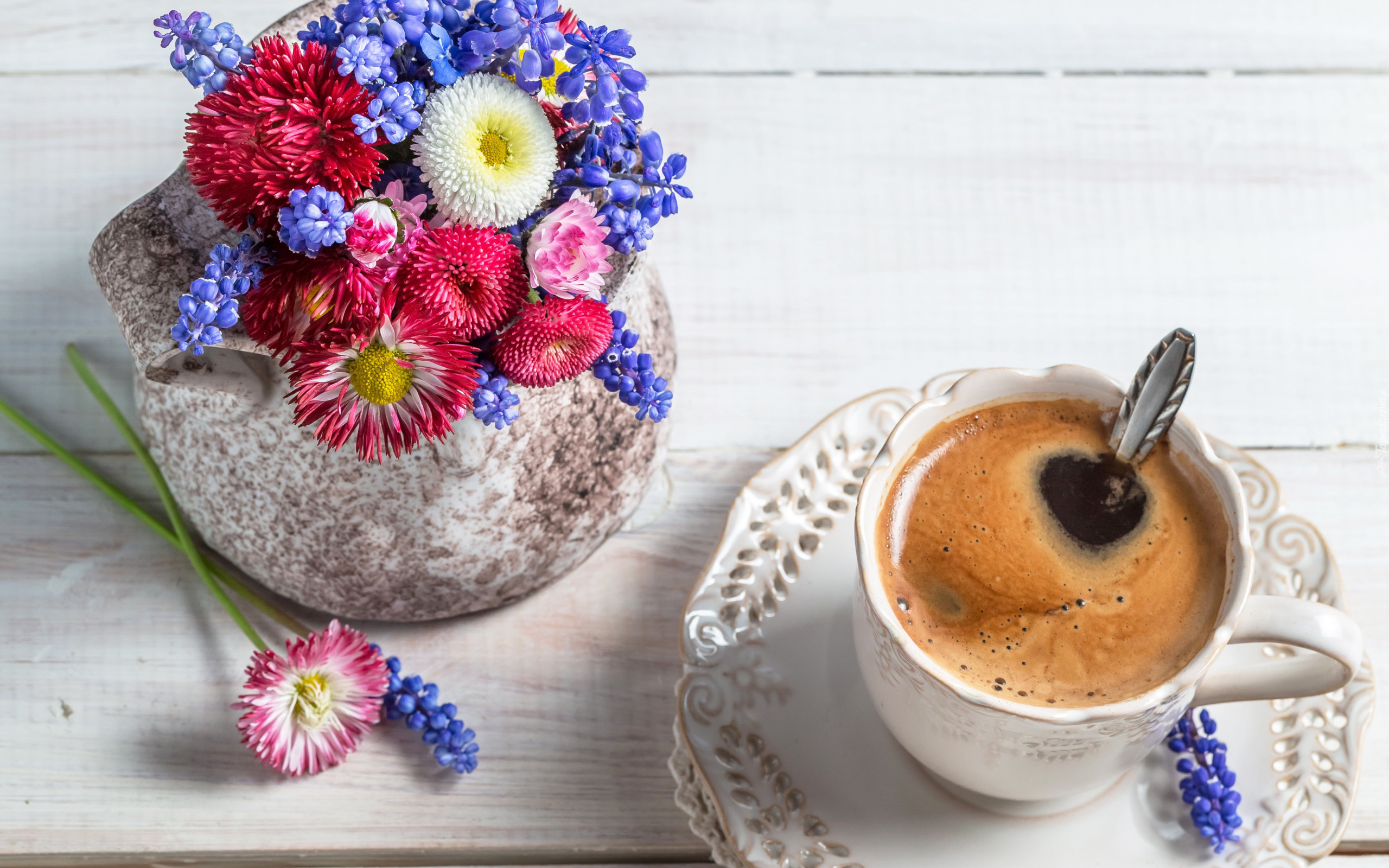 Edytor tapety: Kawa, Bukiecik, Kwiaty, Stokrotki